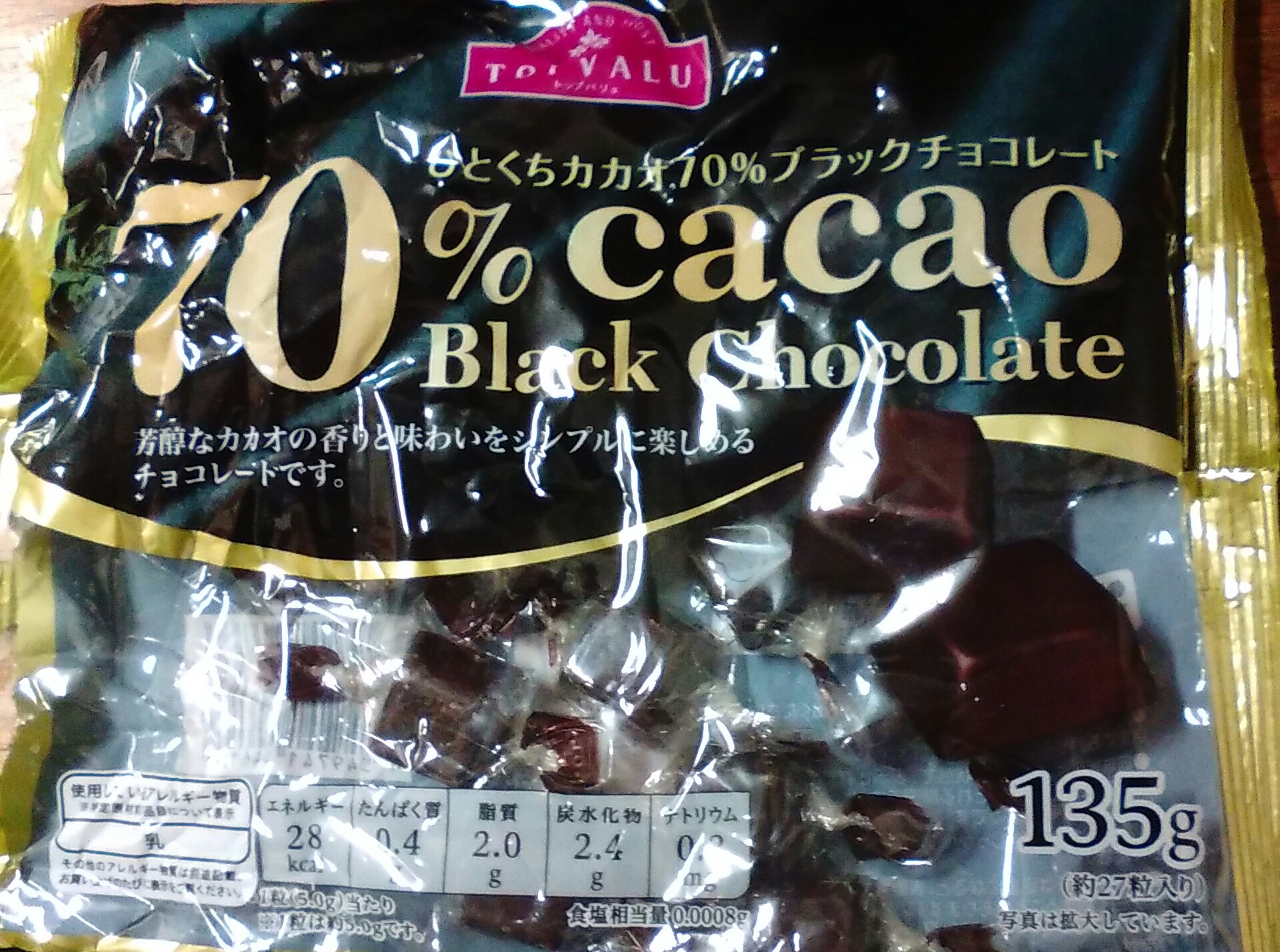 イオンのオリジナルブランド、トップバリュの『ひとくちカカオ70%ブラックチョコレート』。