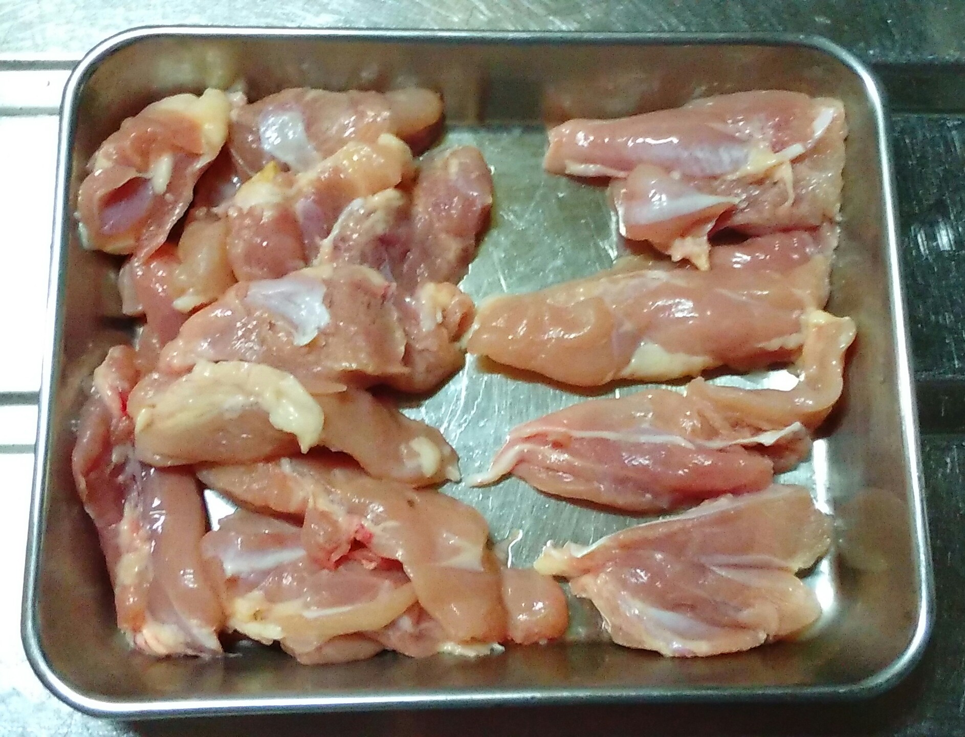 鶏モモ肉は小指くらいの形に切り塩胡椒する。