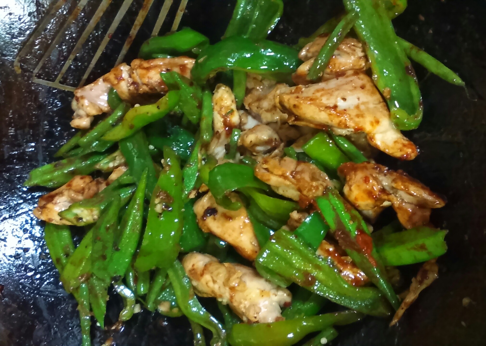 その時食べたのはインゲンの豆鼓醤炒めでしたが、鶏モモと、ピーマン&オクラの夏野菜を加えて、メインとなる一品に仕上げています。