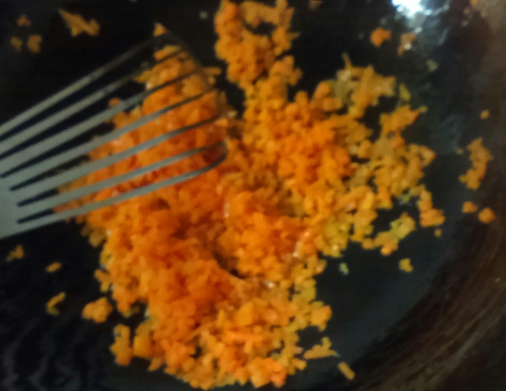 ②フライパンに大さじ1の油を熱し、ニンジンを入れて炒める。