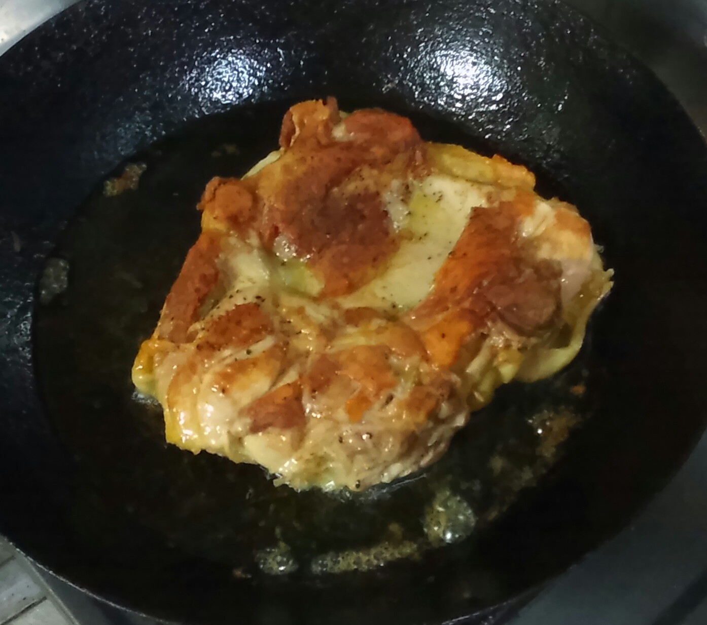 ⑥ひっくり返してから6~8分後、皮がパリッとするまで焼けば完成です。