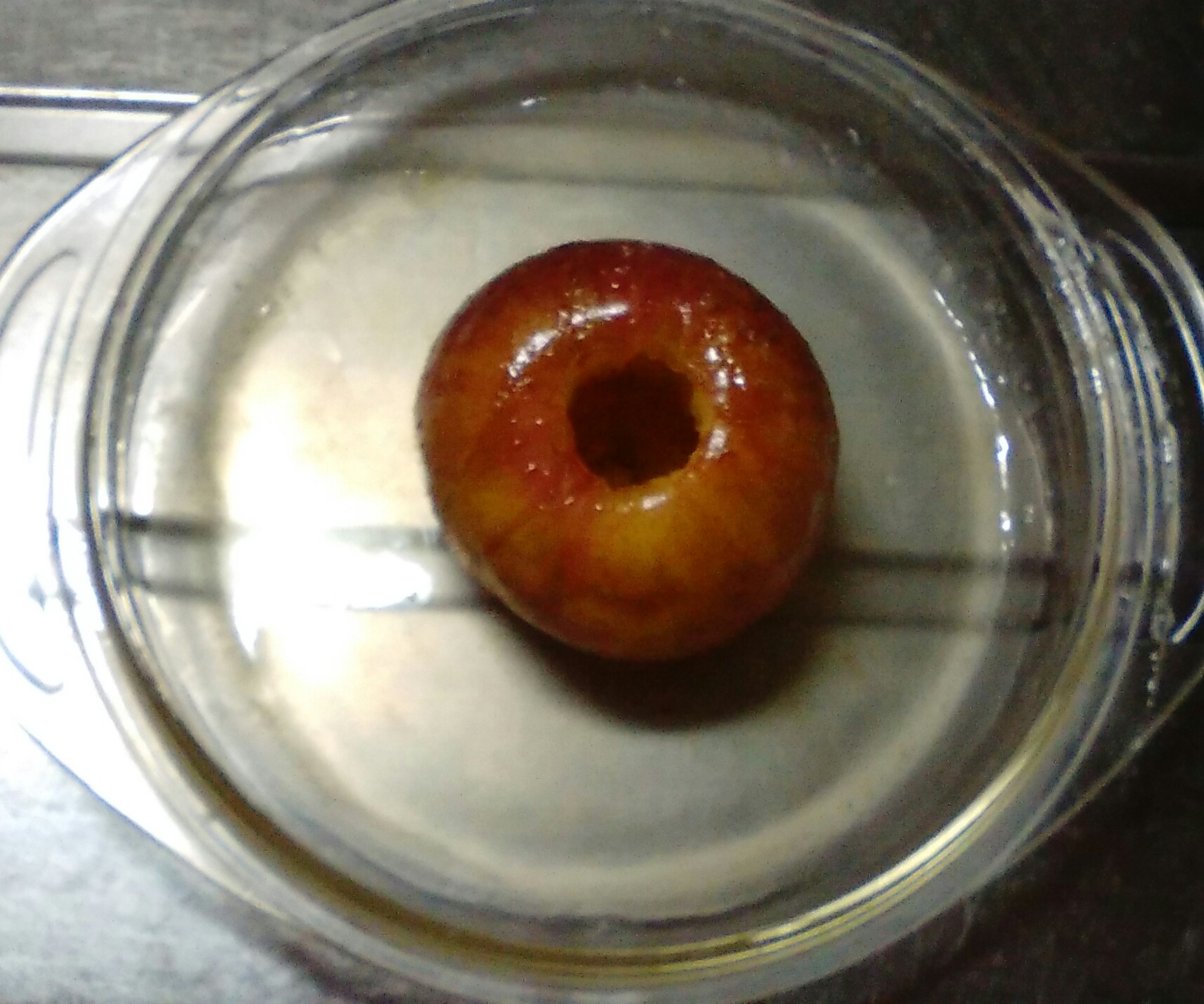 リンゴを電子レンジにかけた後、残っている汁は、甘くて美味しいリンゴのエキス。