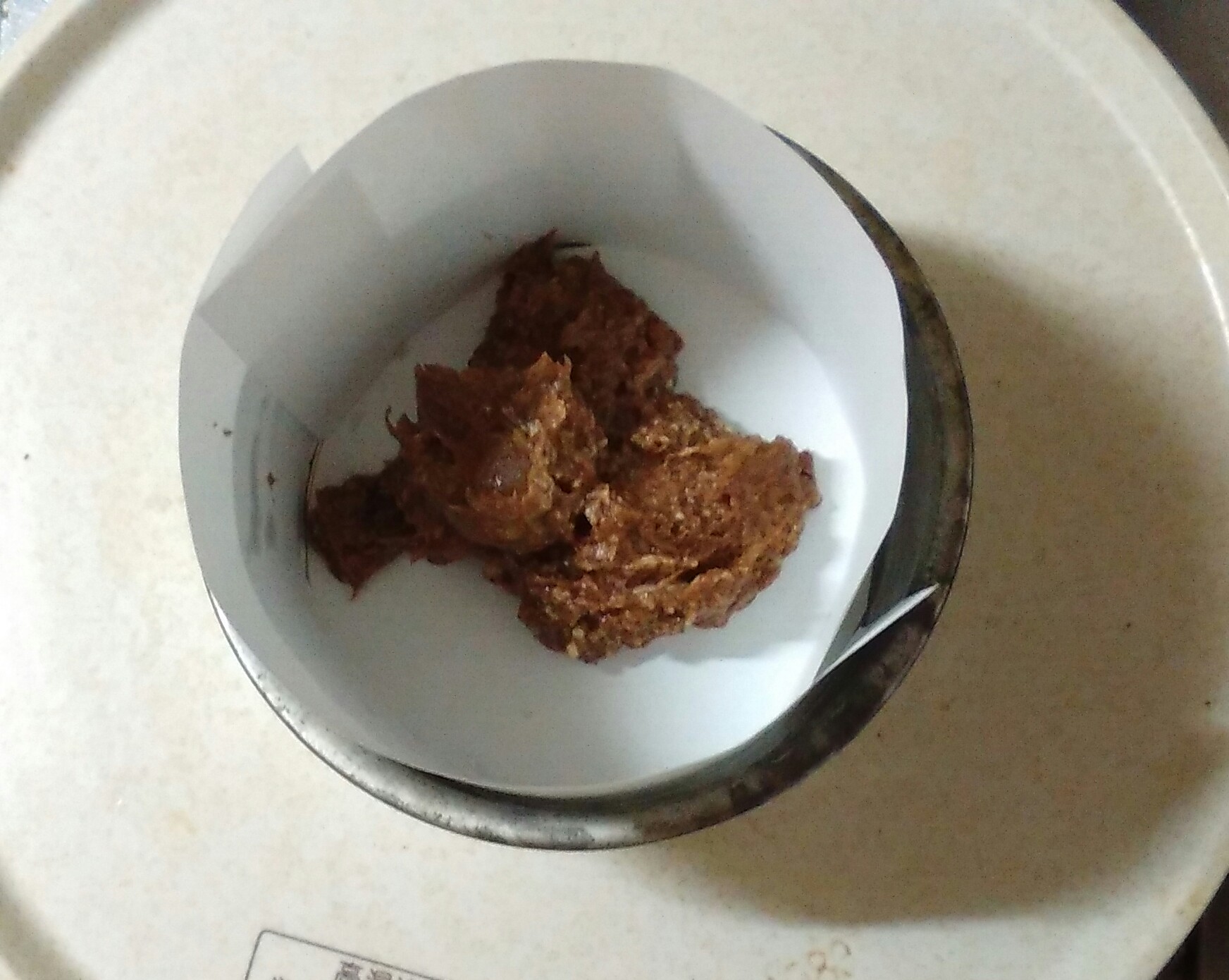 ⑤紙を敷いた型の真ん中に、生地の1/4ほどを置く。