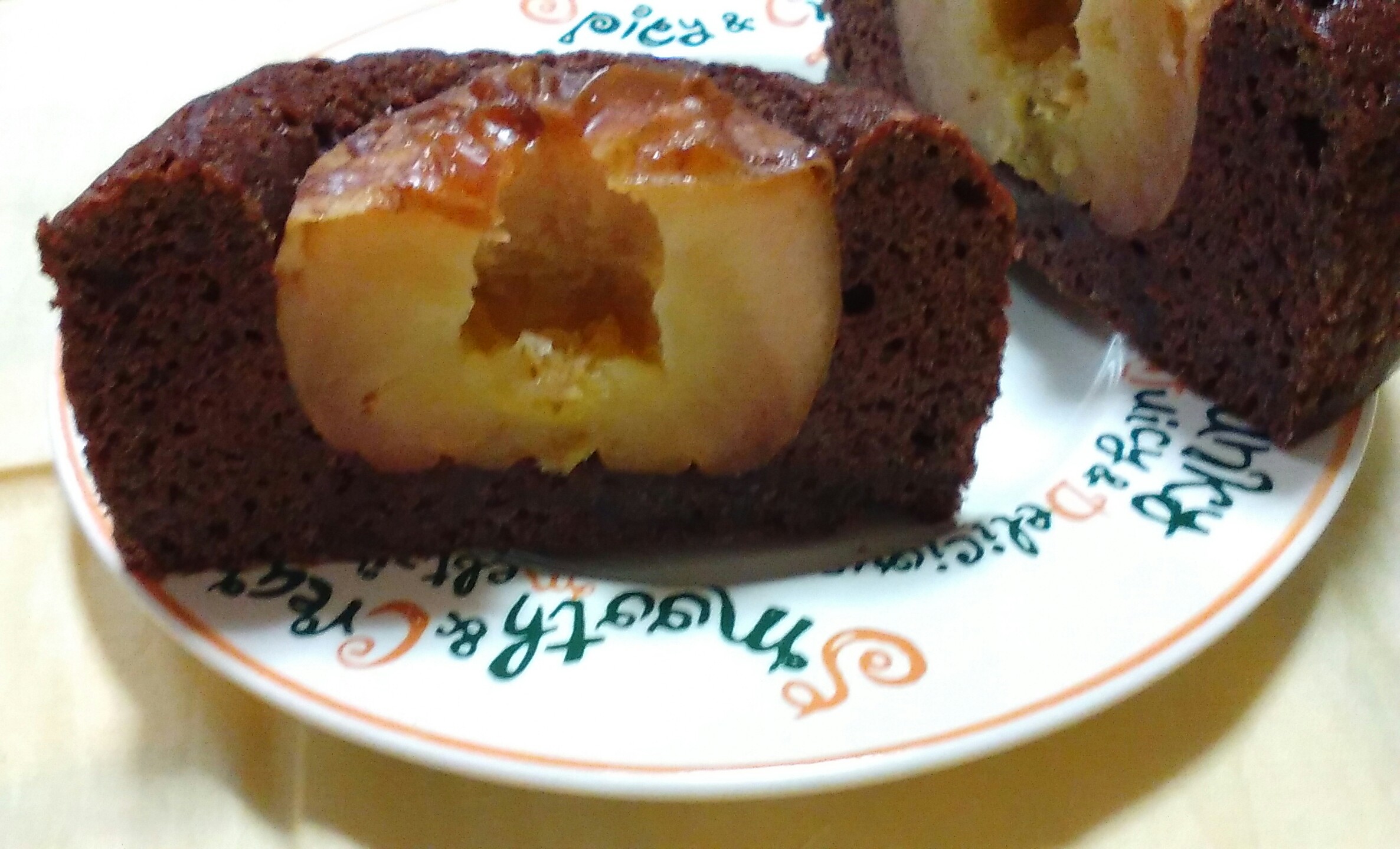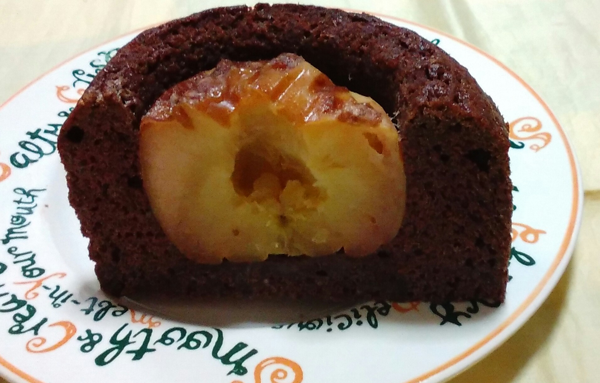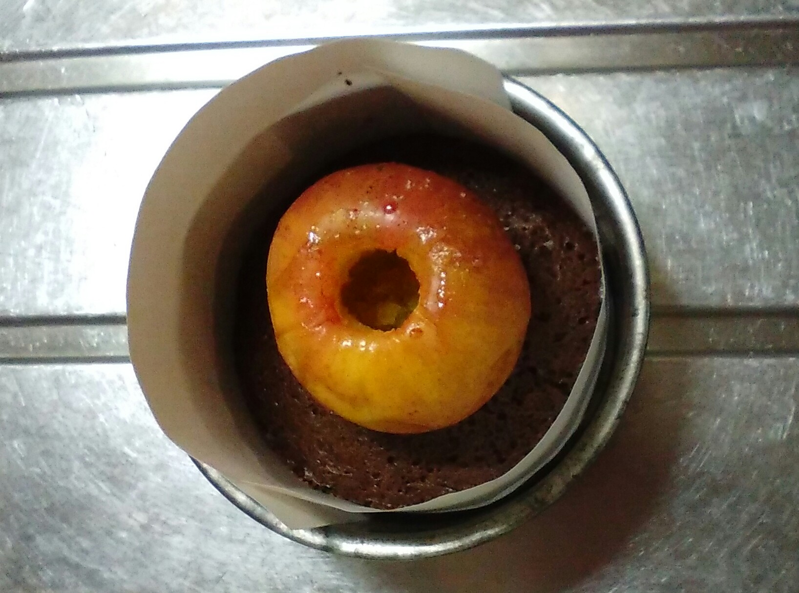 リンゴを豪快に丸ごと1個入れたチョコレートケーキ。