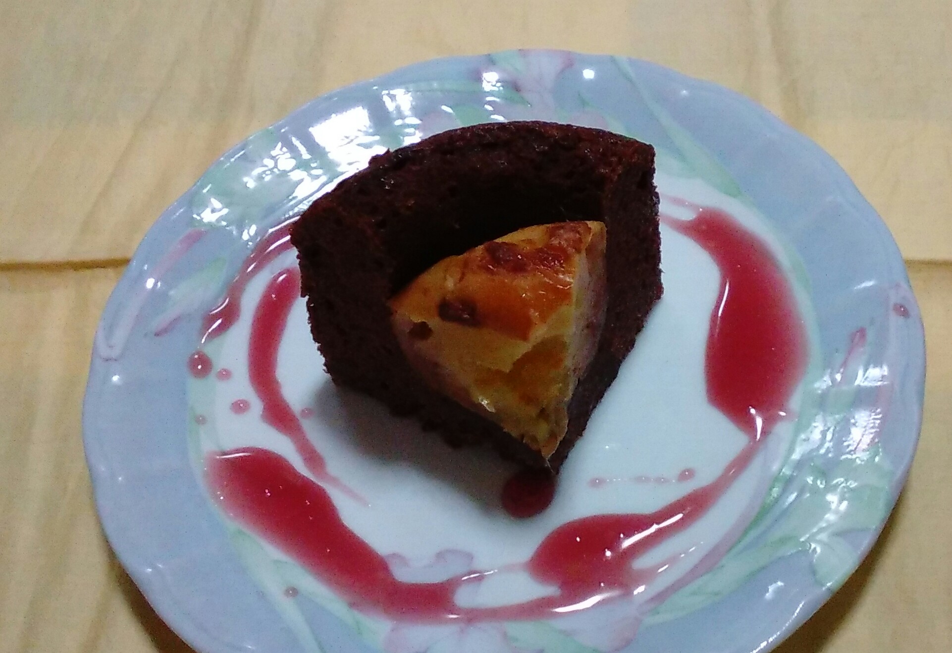 ココアの入った生地に甘酸っぱいリンゴとリンゴソース。