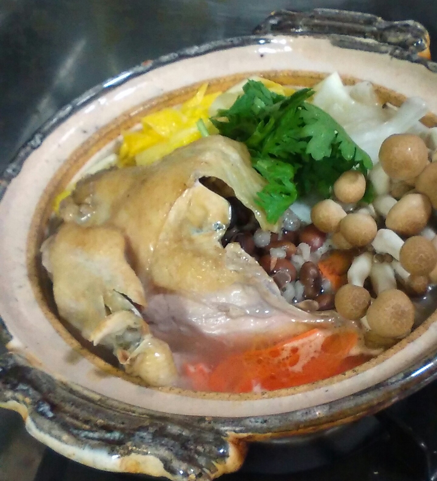 鶏が丸ごと一羽、鍋の中で煮えたぎっているではありませんか!