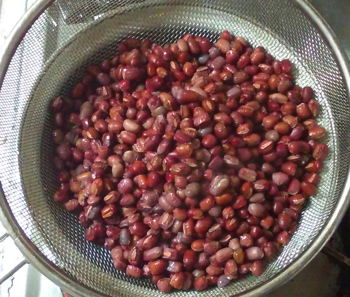 ・大豆などは煮る前に一晩水に浸けますが、小豆は必要ありません。