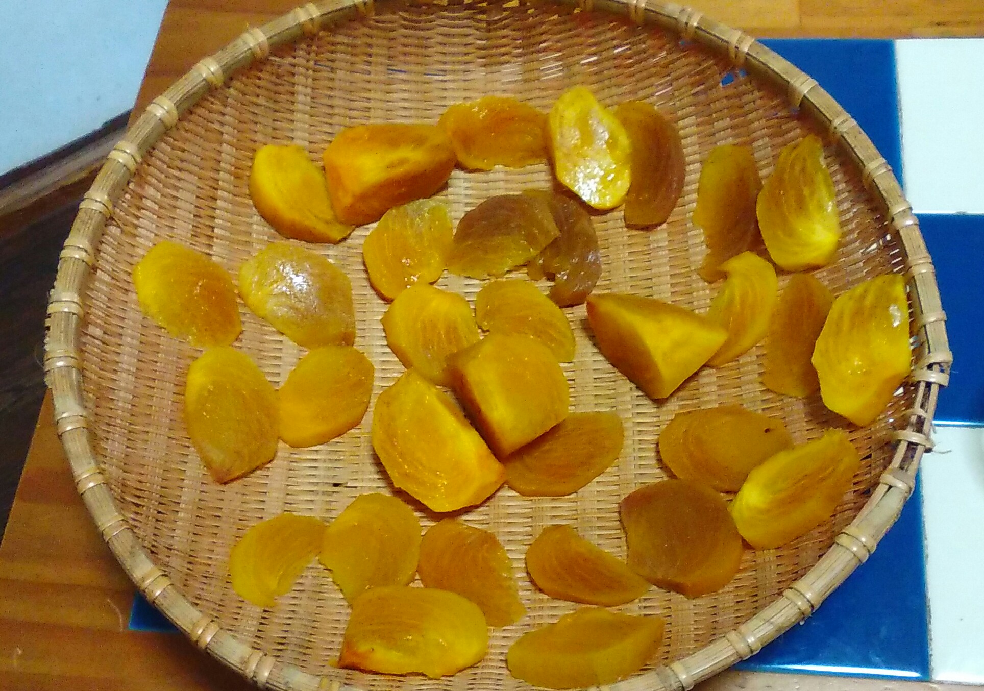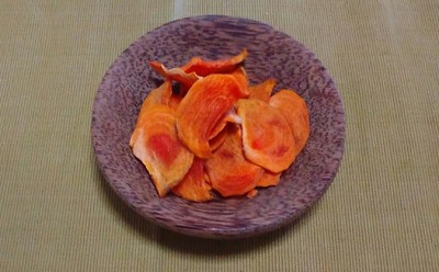 こちらは↓昨年秋に生の柿で作った柿チップスの写真です。