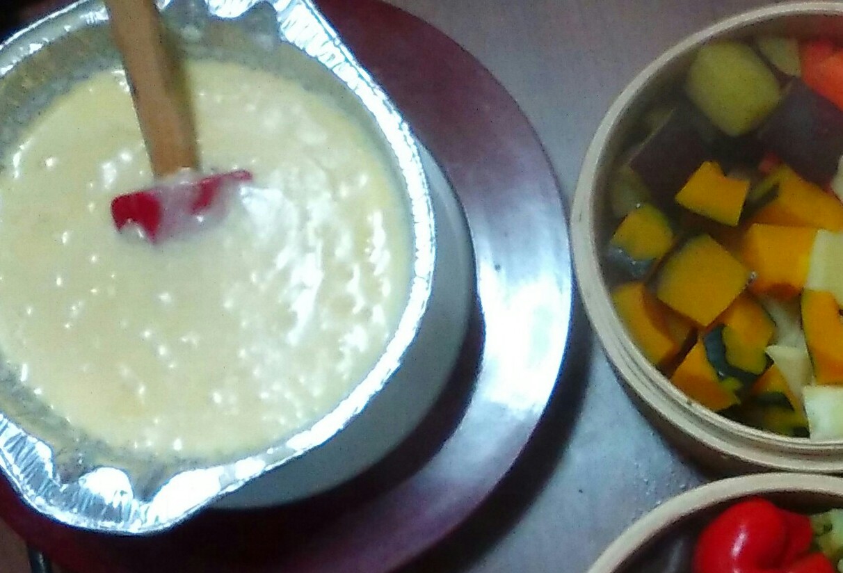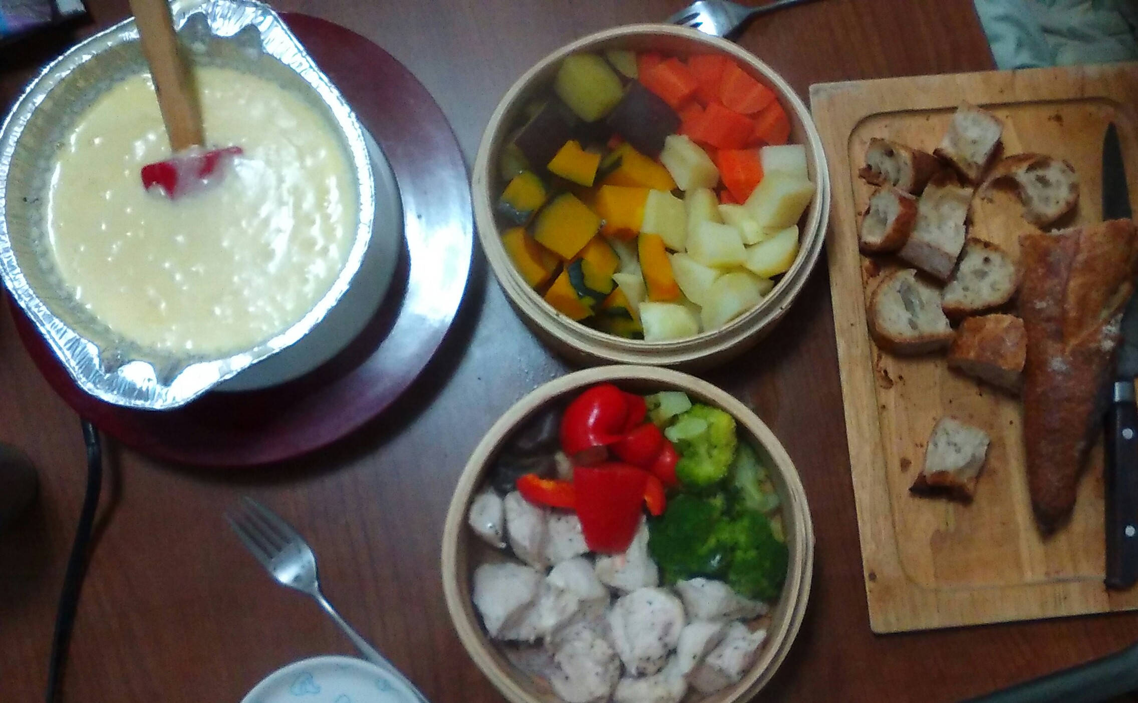 これまではチーズフォンデュの具は電子レンジにかけたりゆでたりしていましたが、去年買った蒸籠が大活躍♪