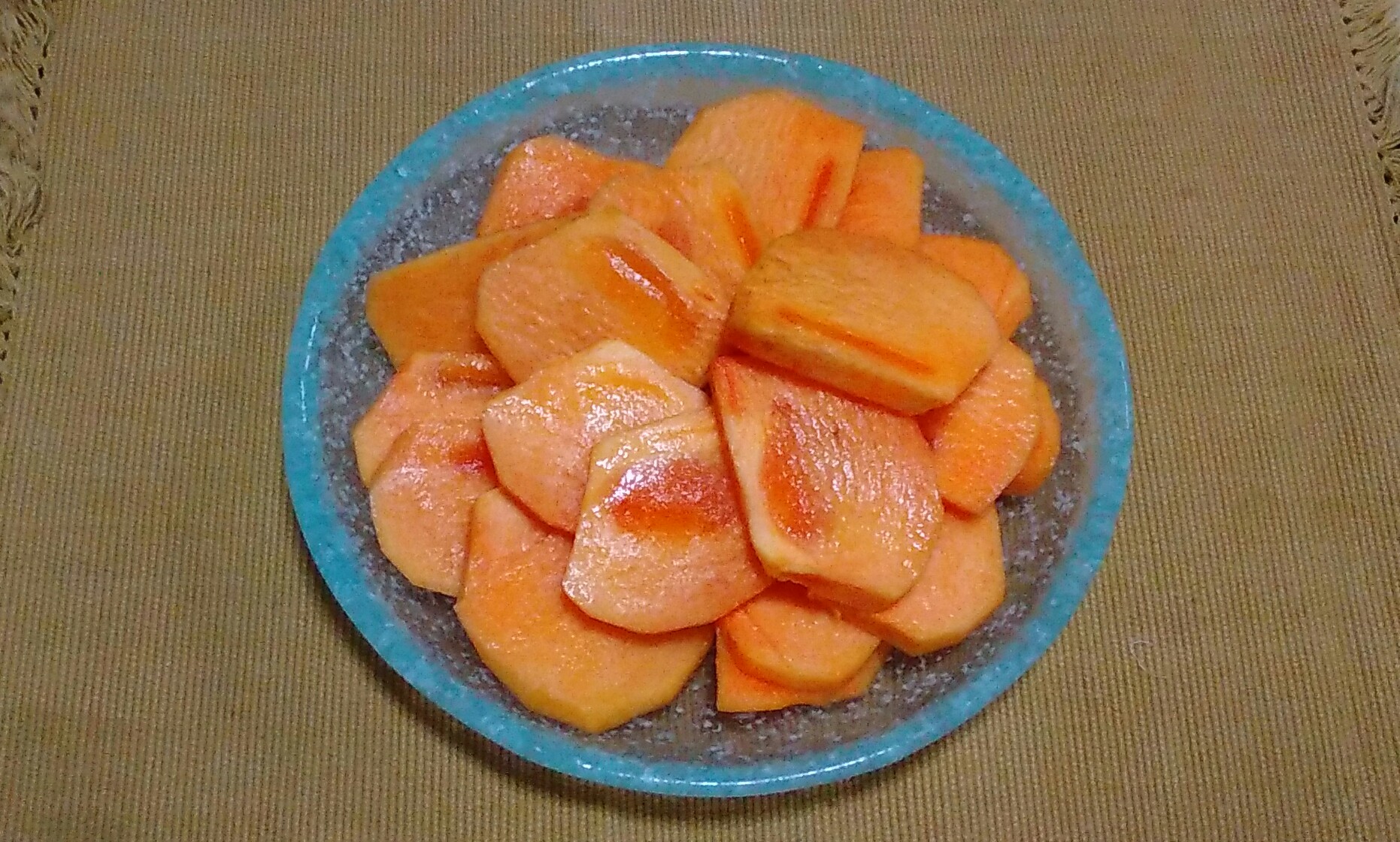 たくさんいただいたので、今日から数日間にわたって柿を使った料理などをお届けしたいと思いま~す。