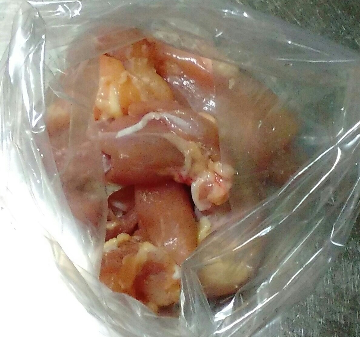 他の料理で余った鶏肉を、ついでに切っておき、ビニールにいれて味をつけ冷凍しておくと、お弁当の材料がなくて困ったときに重宝しますよ~♪