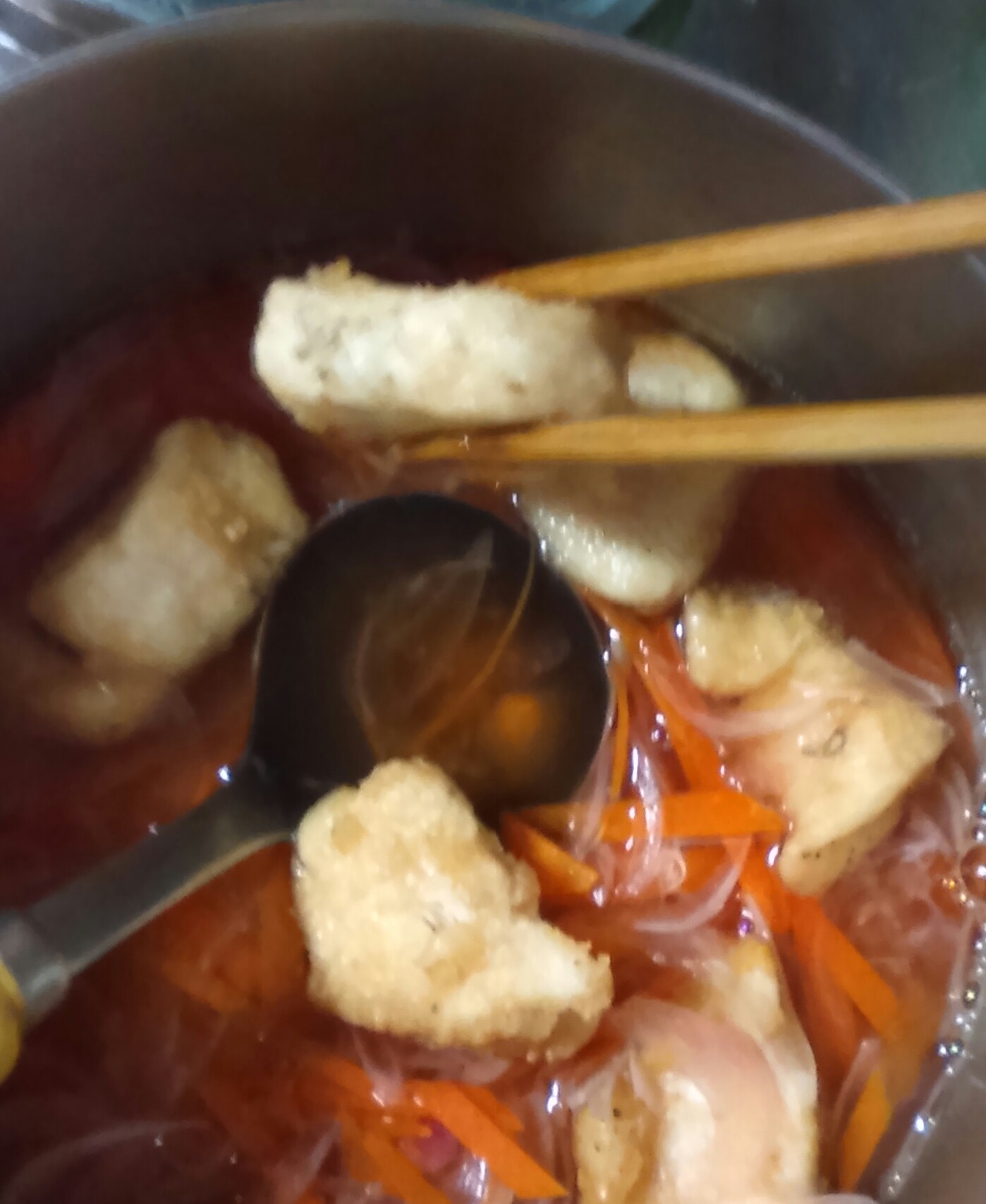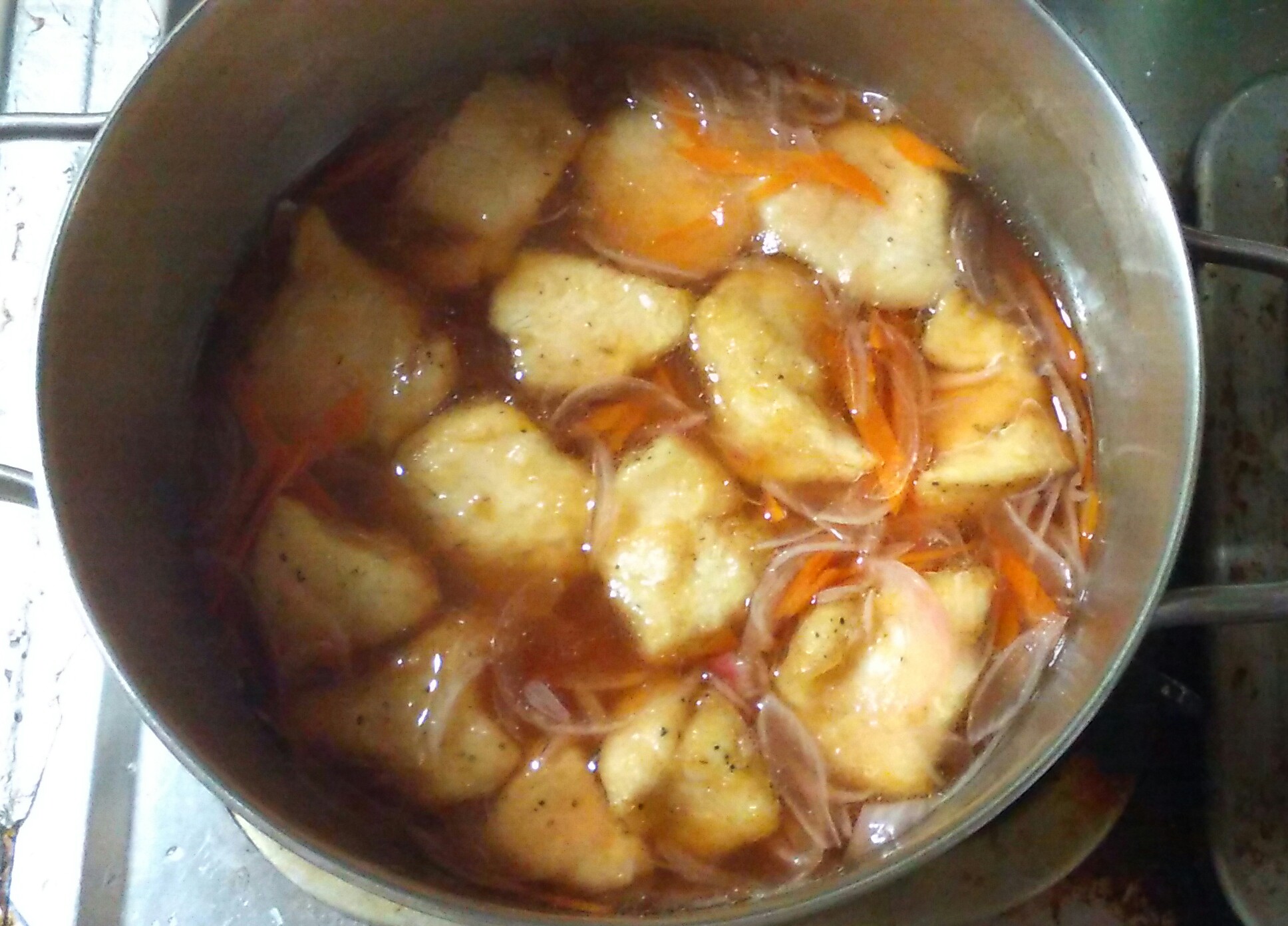 千切りにした人参と玉ねぎのスライスも入れ、ひと煮たちさせる。