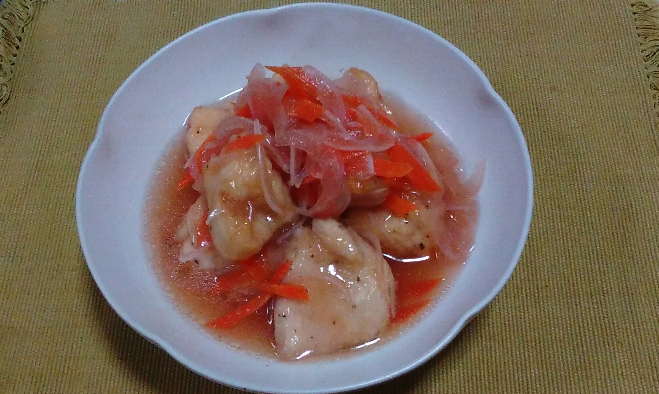 アジも美味しいのですが、食べごたえのある鶏むね肉を使った南蛮漬けもボリューミーで若い人に喜ばれる献立です。