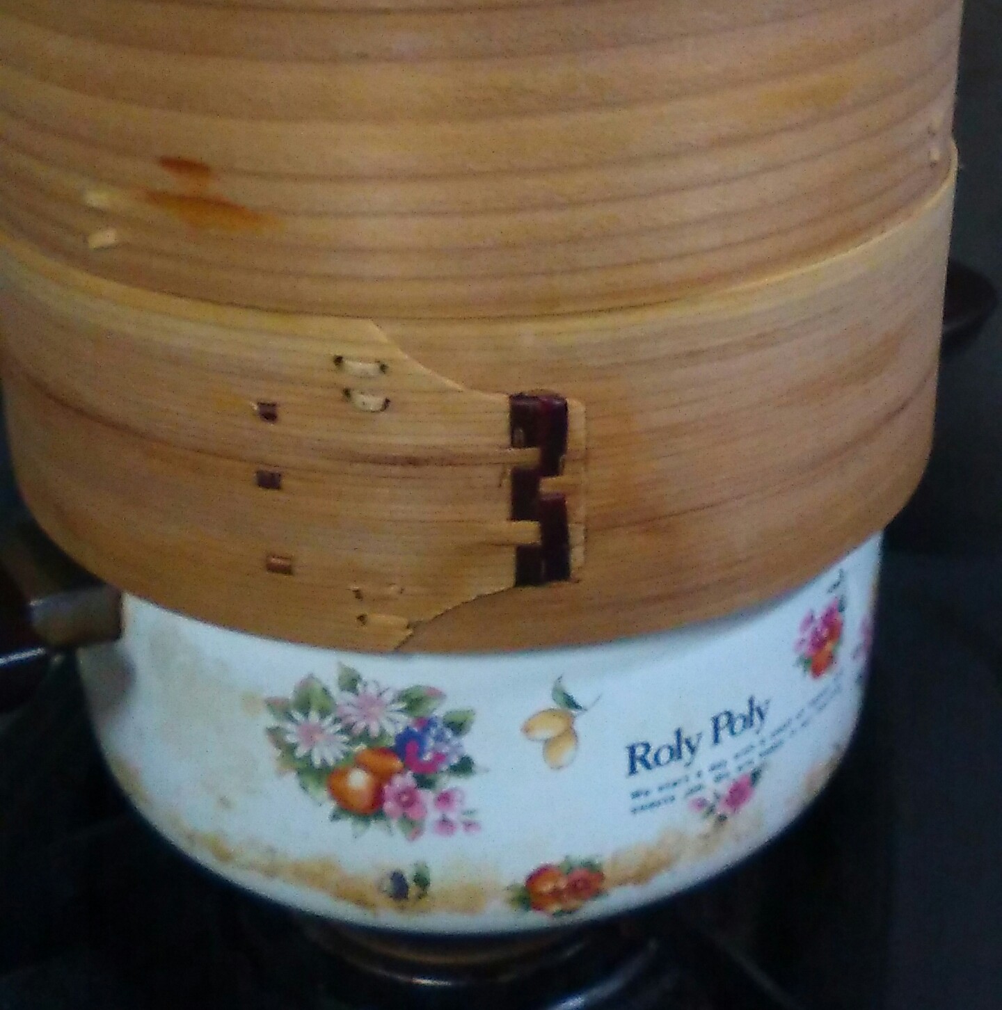セイロを乗せる鍋の口は、セイロより大きい物を選ばないと、鍋底からはみ出した火がセイロを焦がすんです。