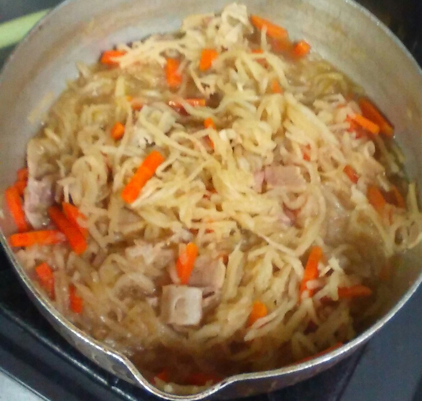 ⑤切り干し大根が好みの固さに煮えたら(5~10分位)、調味料を入れさらに1~2分煮れば完成です。