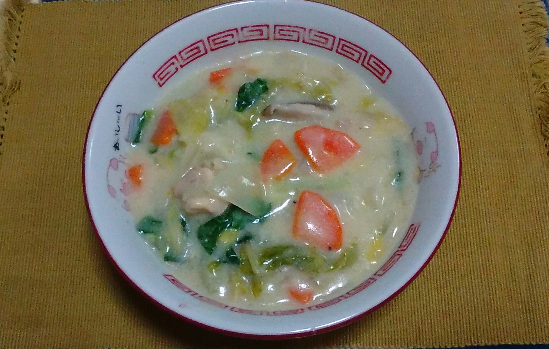 チンゲンサイとシイタケが多少の中華感を醸している程度です。