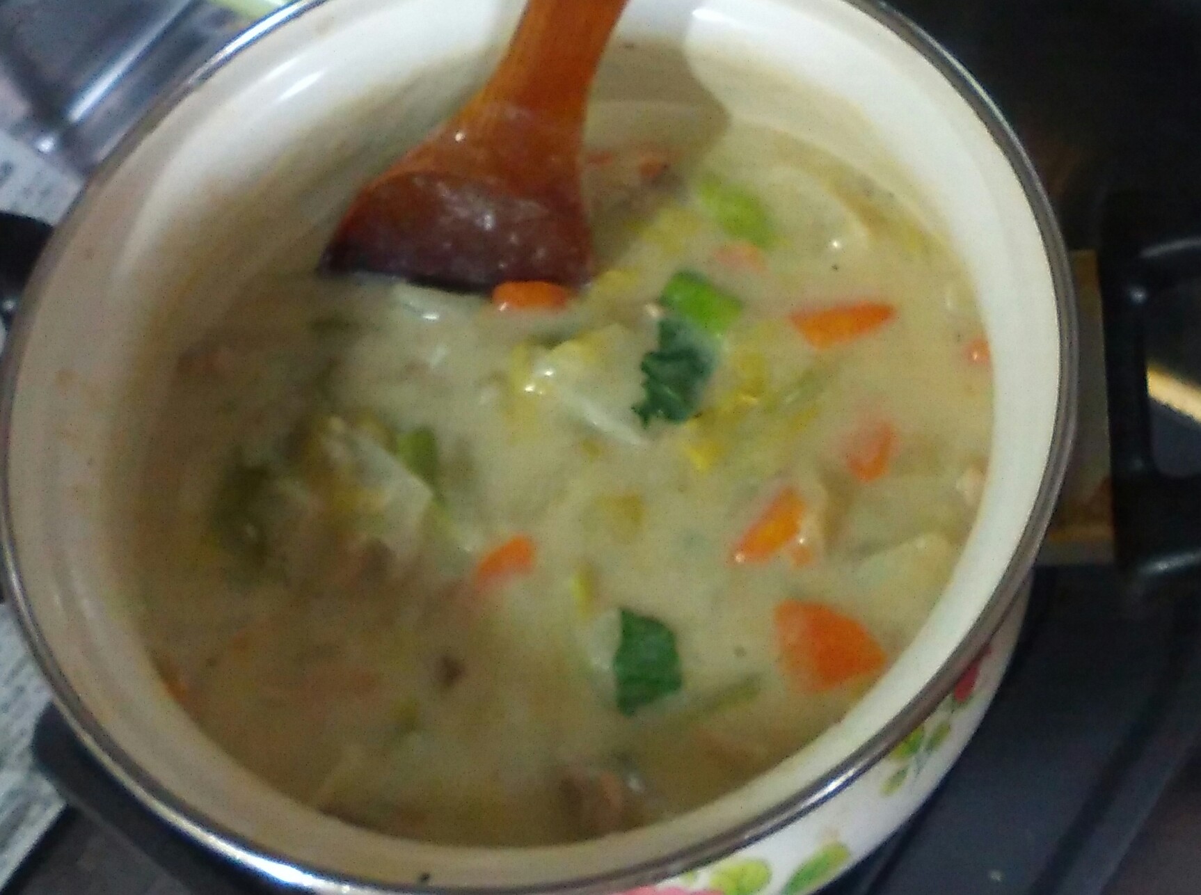 バターや小麦粉やルーを使わず、片栗粉でとろみをつけているため、あっさりしたシチュー風。