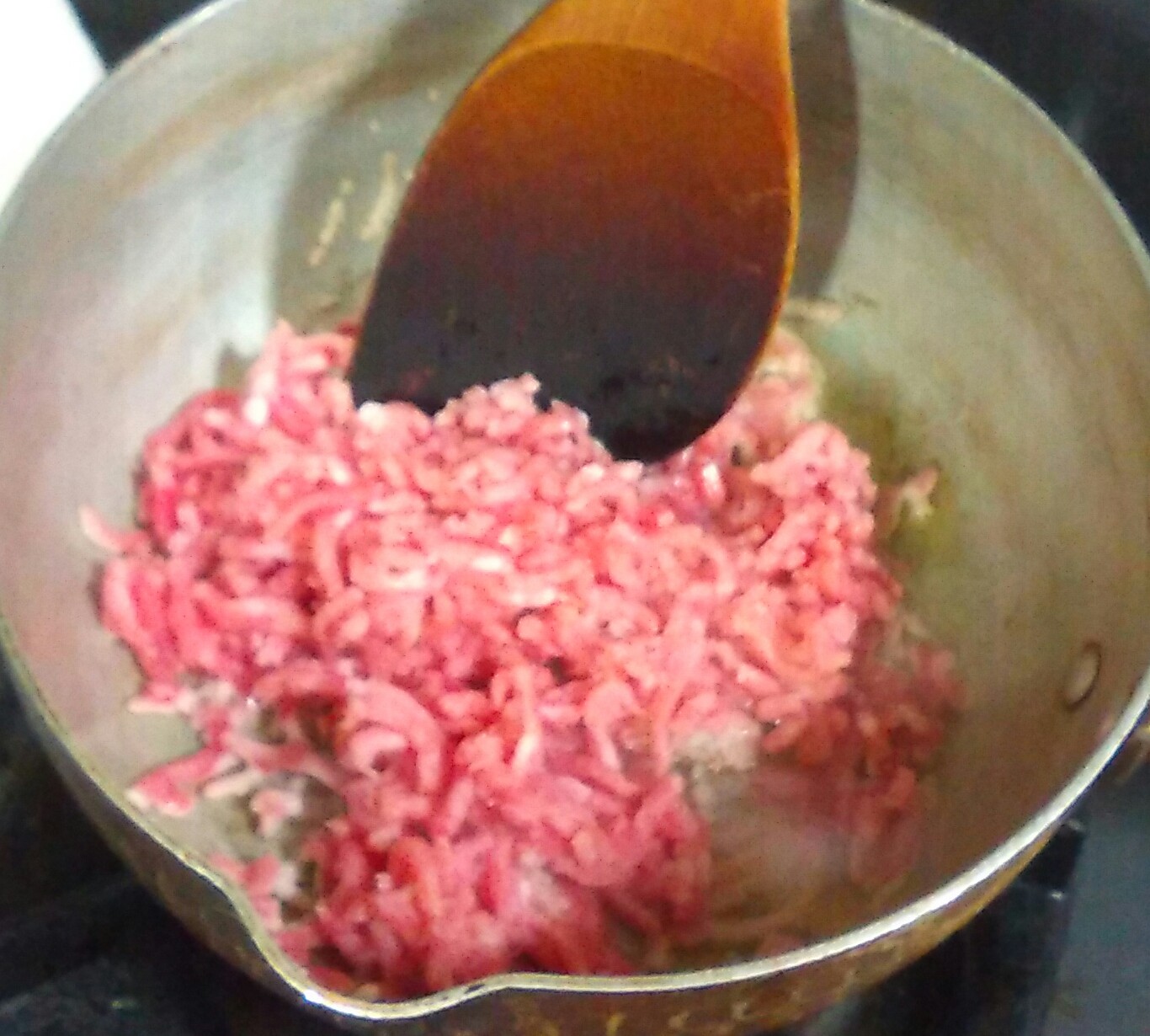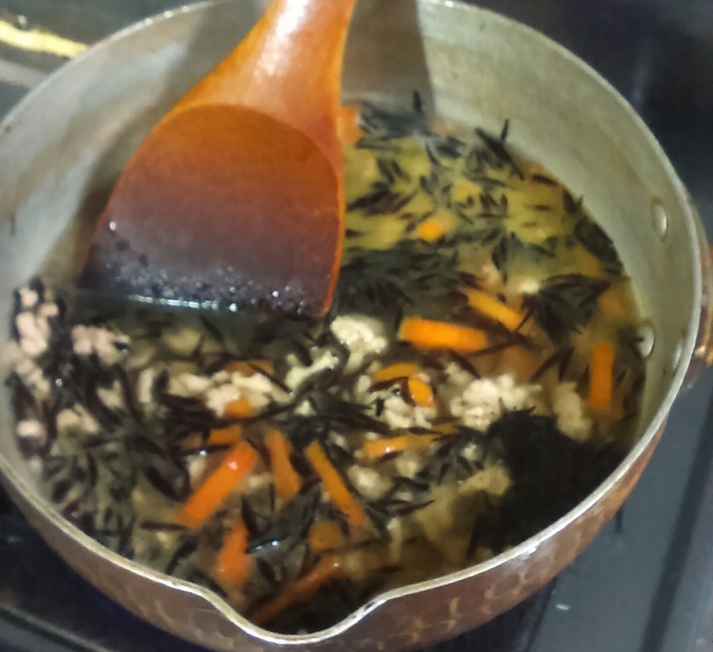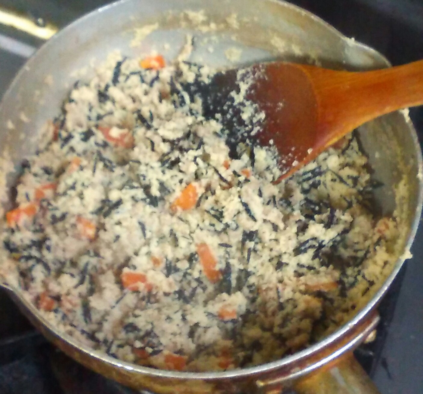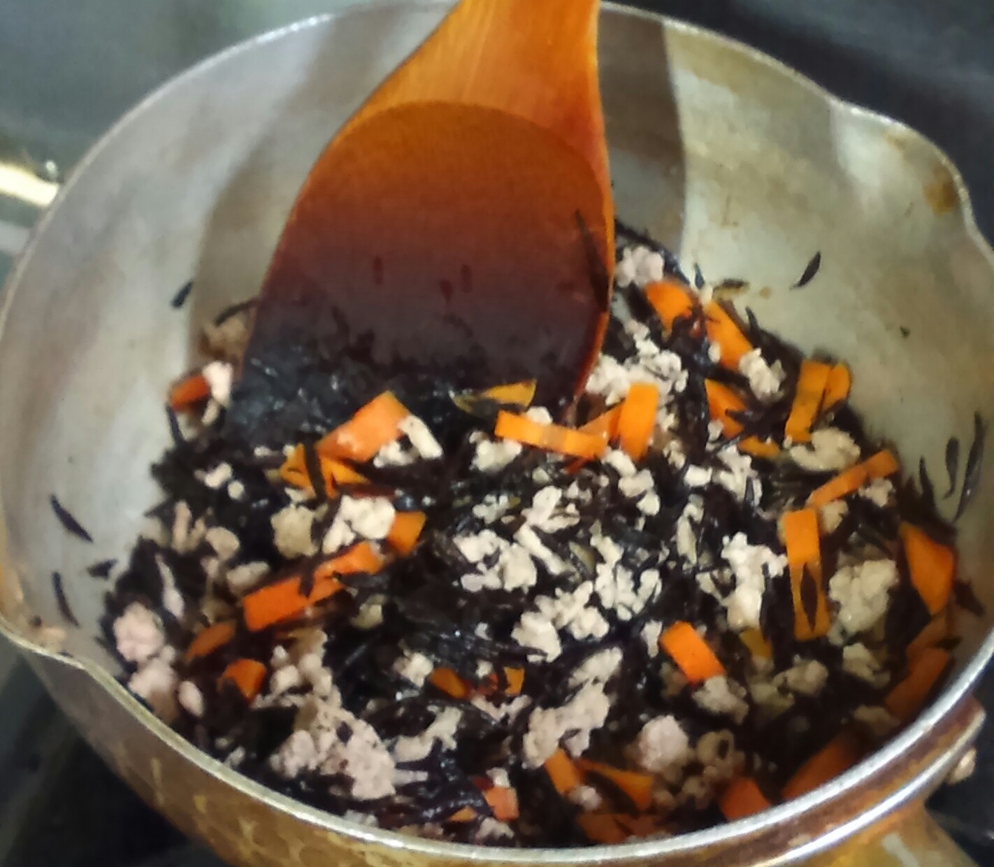③肉が炒まれば、人参、ひじきの順に軽く炒める。