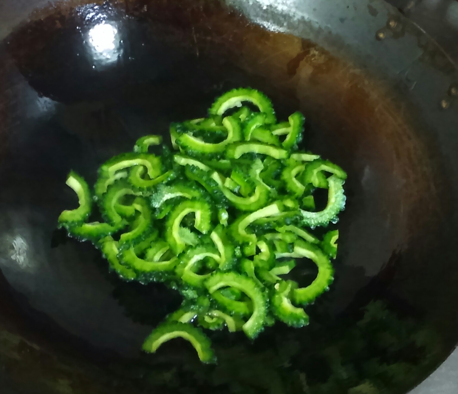 ゴーヤをいったん炒めて取り出し卵と絡めるのは、まんべんなく卵を絡ませゴーヤの苦みを和らげるためです。