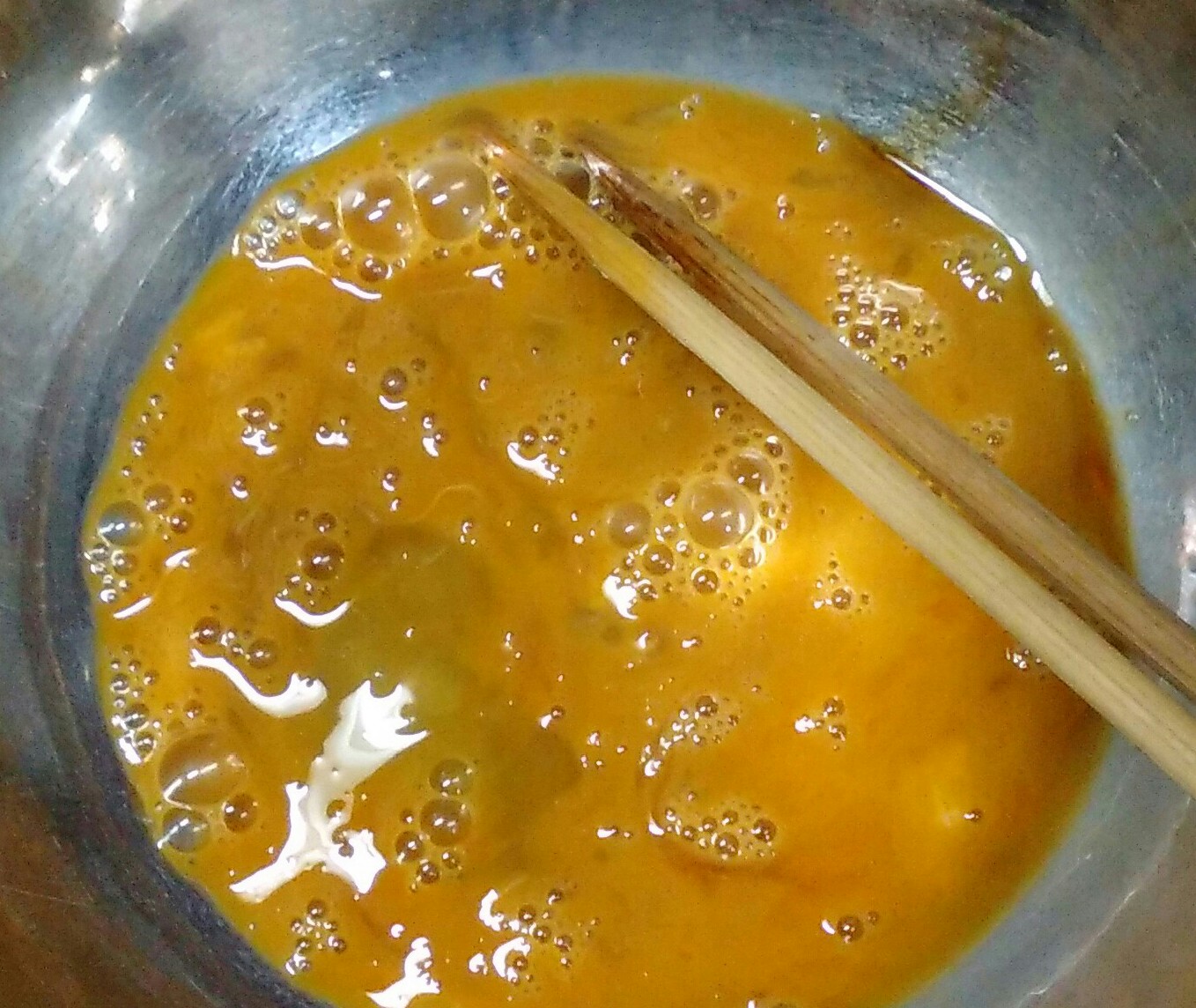 卵に醤油(大さじ1/2)を入れ、溶きほぐしておく。