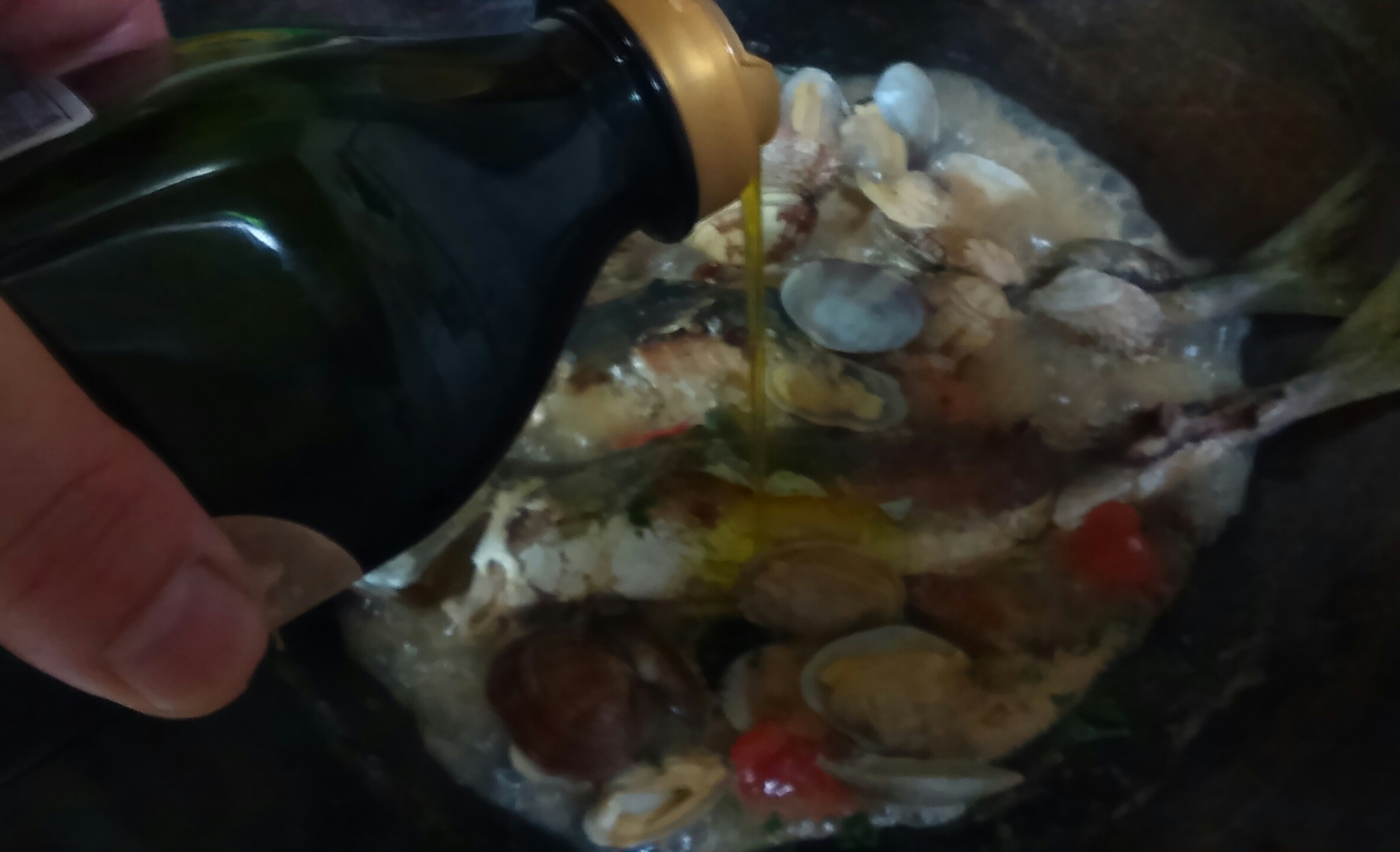 ⑦アサリを戻し入れ、オリーブ油を回し入れて強火で乳化させ、仕上げにパセリを入れれば完成です。