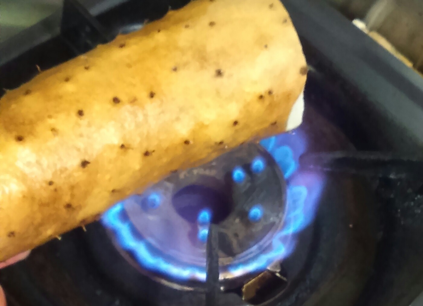 ①山芋は、皮をむかずにヒゲ根を焼いておく。