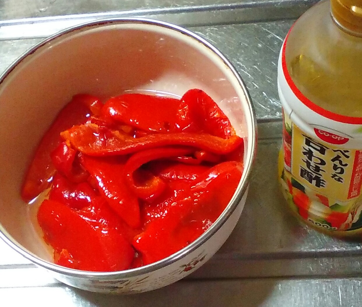 パプリカの甘酢漬けも定番の常備野菜です。