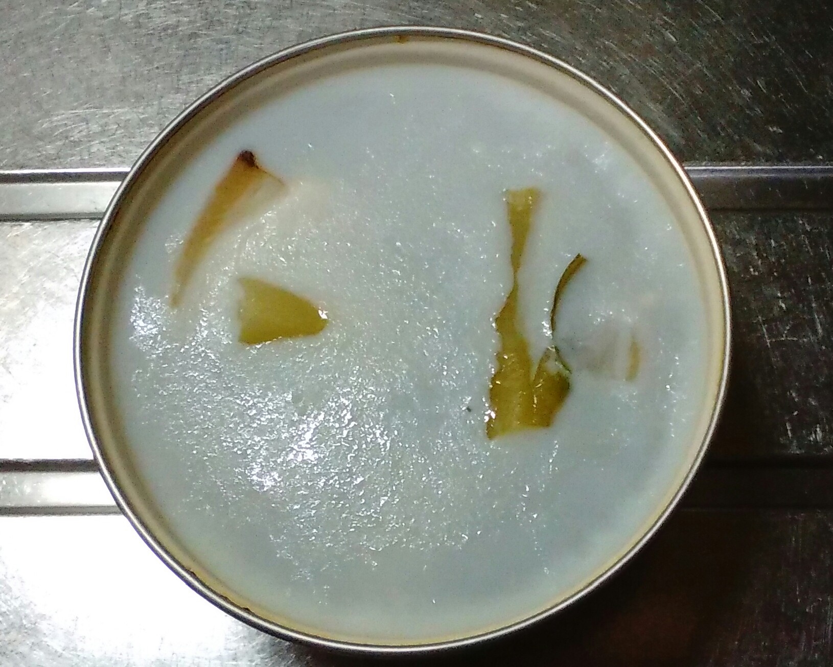 ④脂が表面に浮いて固まっているので、脂を取り除く。