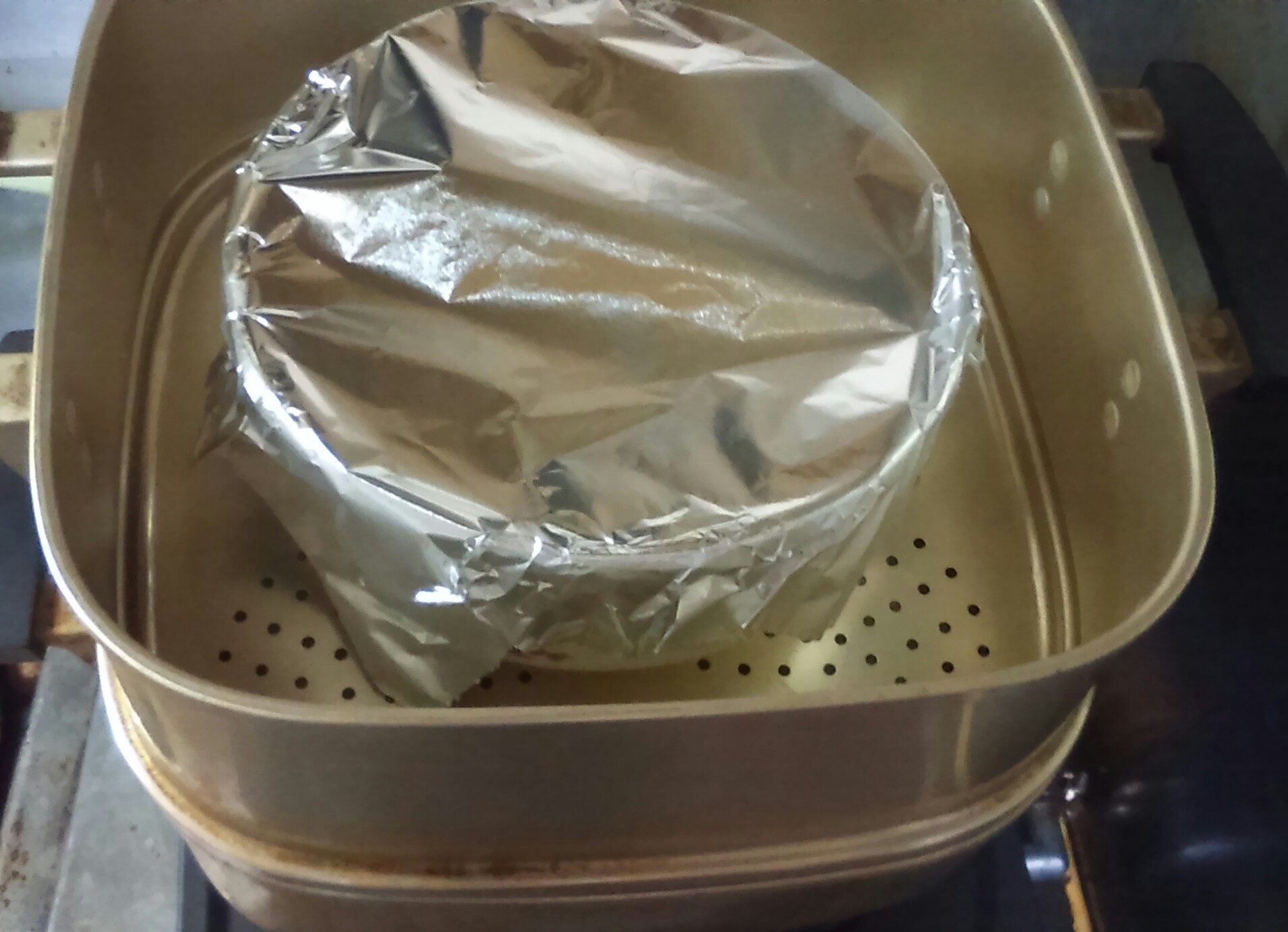 ①耐熱容器に豚バラ、茹で汁、醤油、砂糖、紹興酒を入れ、アルミホイルでフタをして2時間蒸す。