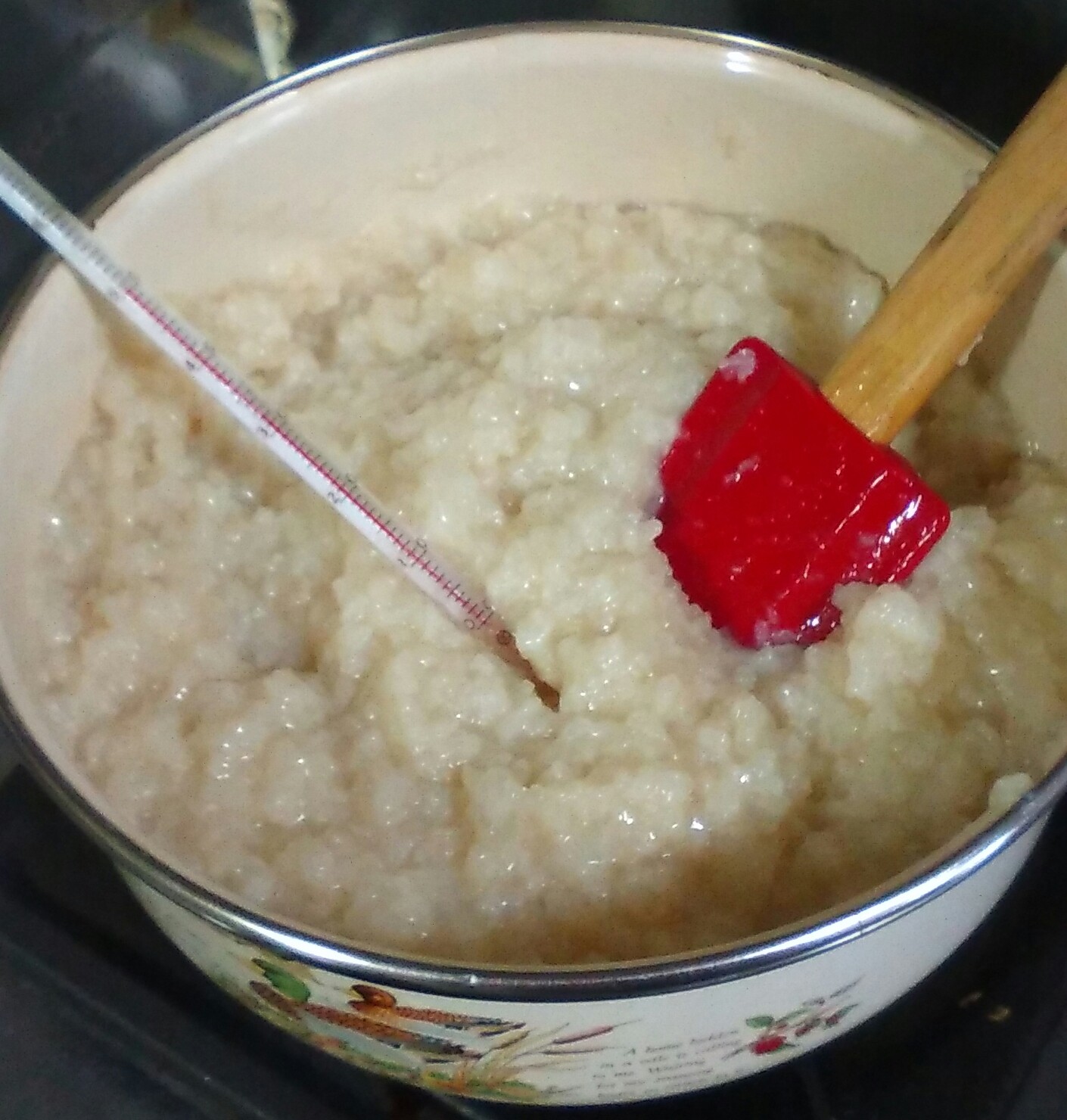 一旦取り出して温度が上がりすぎないようゆっくり加熱し、60℃位になったので、再び魔法瓶に戻しました。