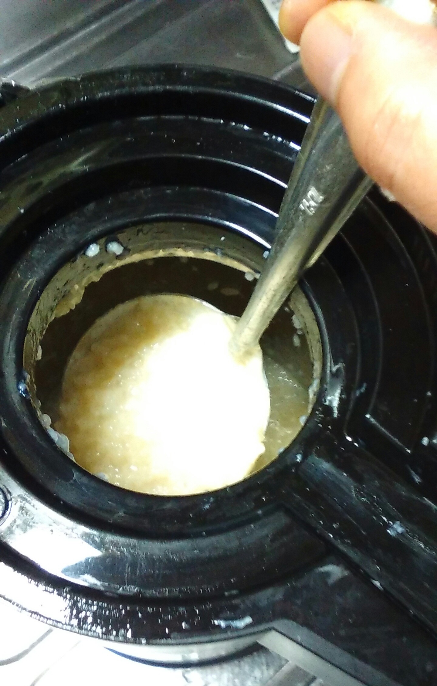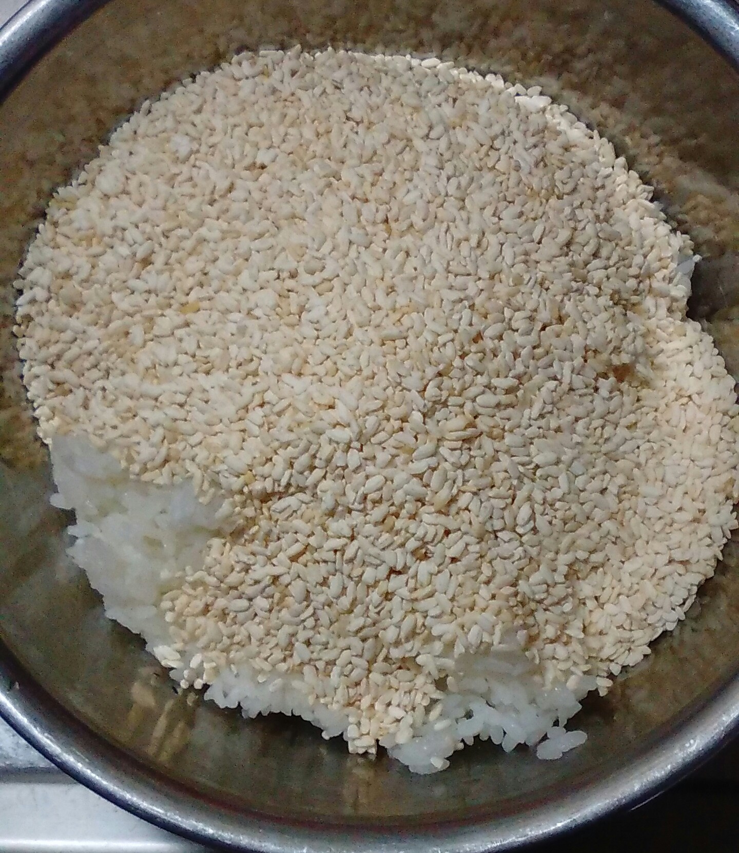米と米麹を混ぜた物を狭い口から入れにくいんです。