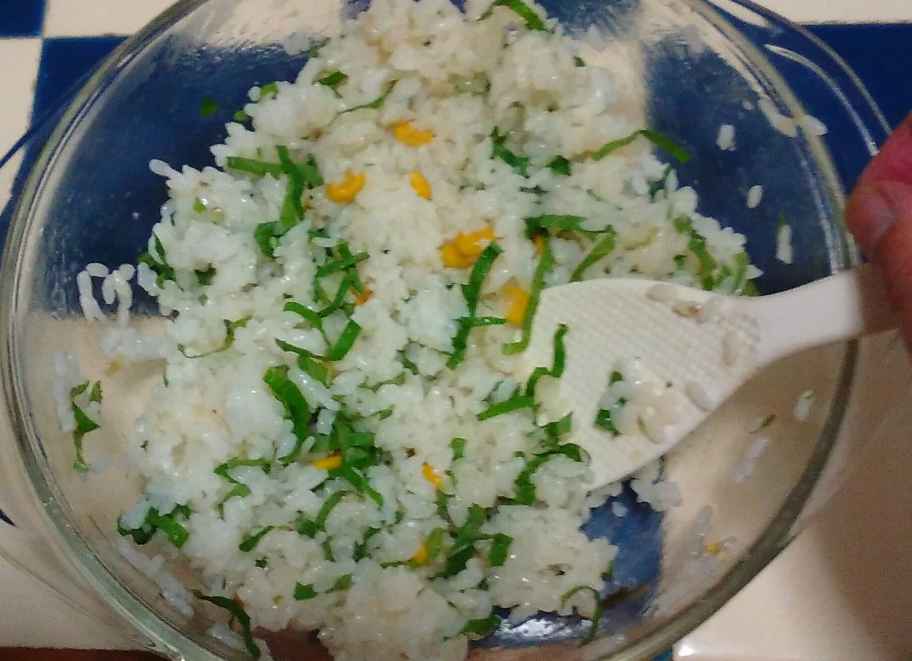 青ジソレシピ③『青ジソ鮭ご飯』『青ジソとうもろこしご飯』
