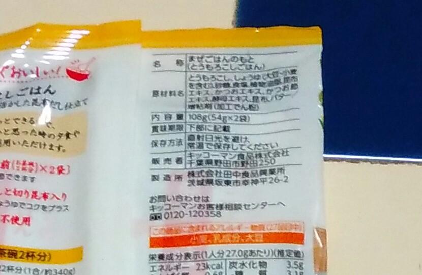 とうもろこしに、昆布、バター、かつおぶしエキスなどが入っています。