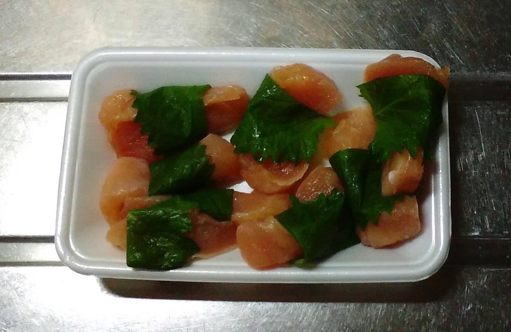 ⑤めんつゆと千切りにした青ジソを添えれば完成です。