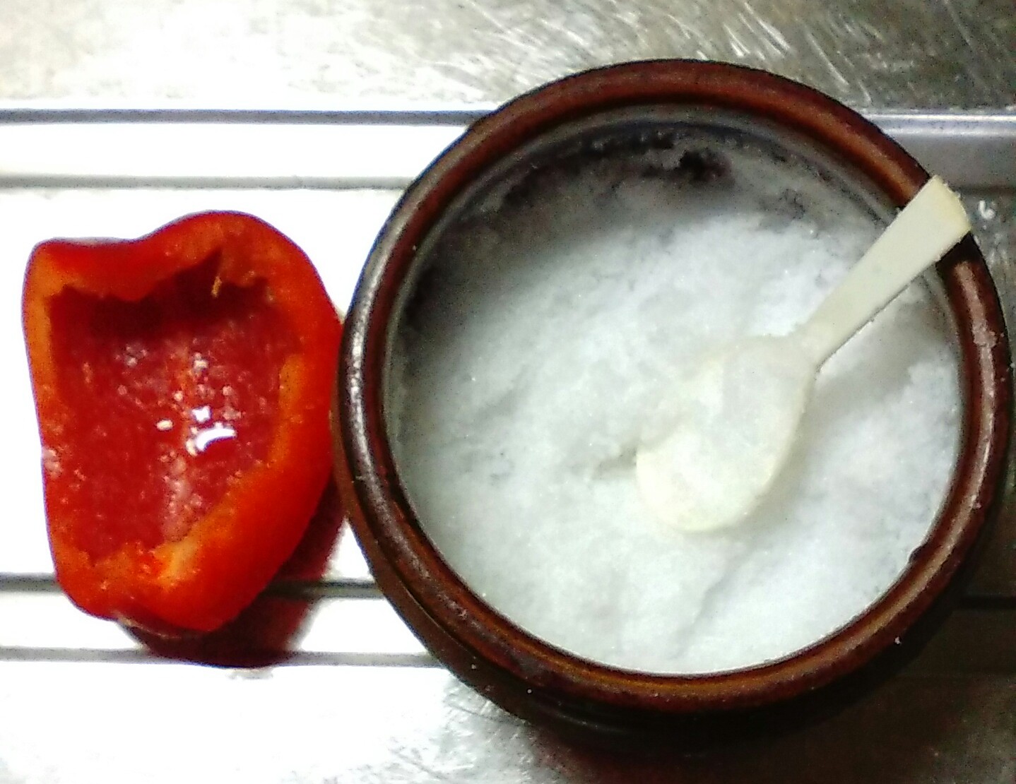 パブリカは丸のままなら日持ちするのに、一度切ってしまうと傷みが早いから、料理の余りをぬか漬けに。