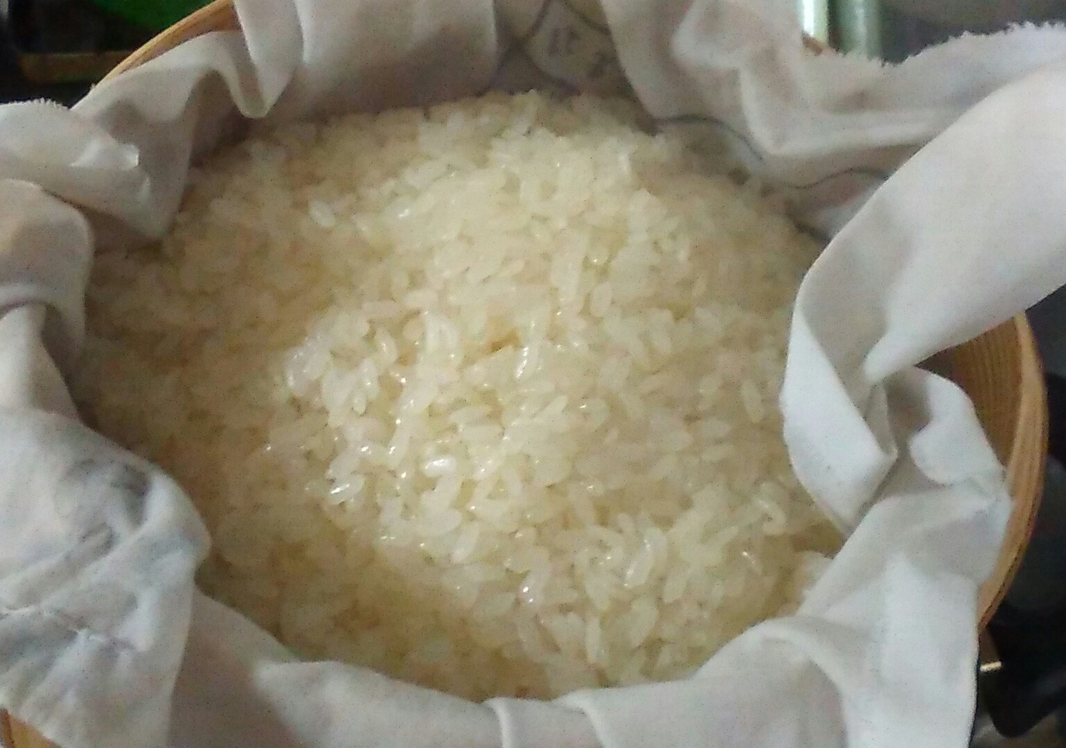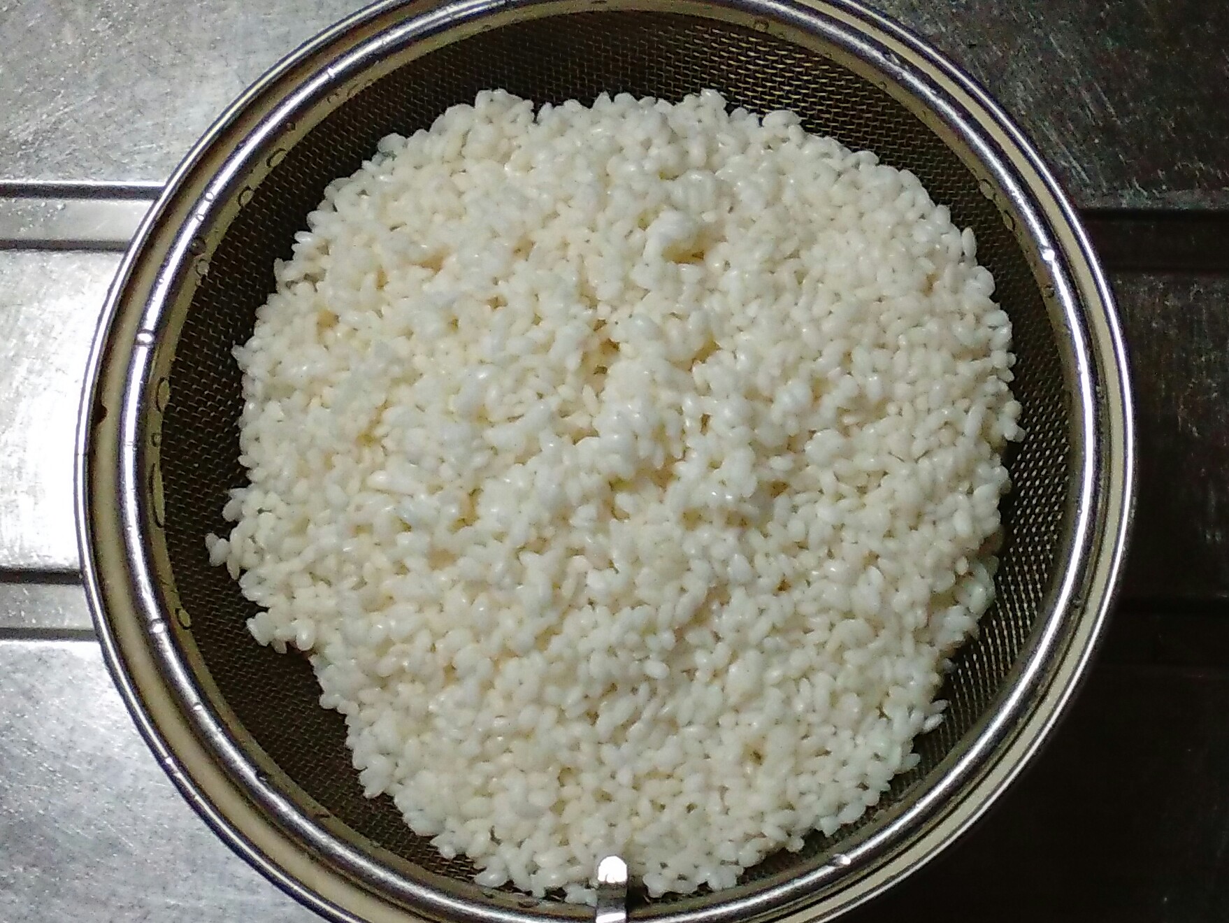 ①前日に餅米は洗い、たっぷりの水につけて涼しい場所においておく。