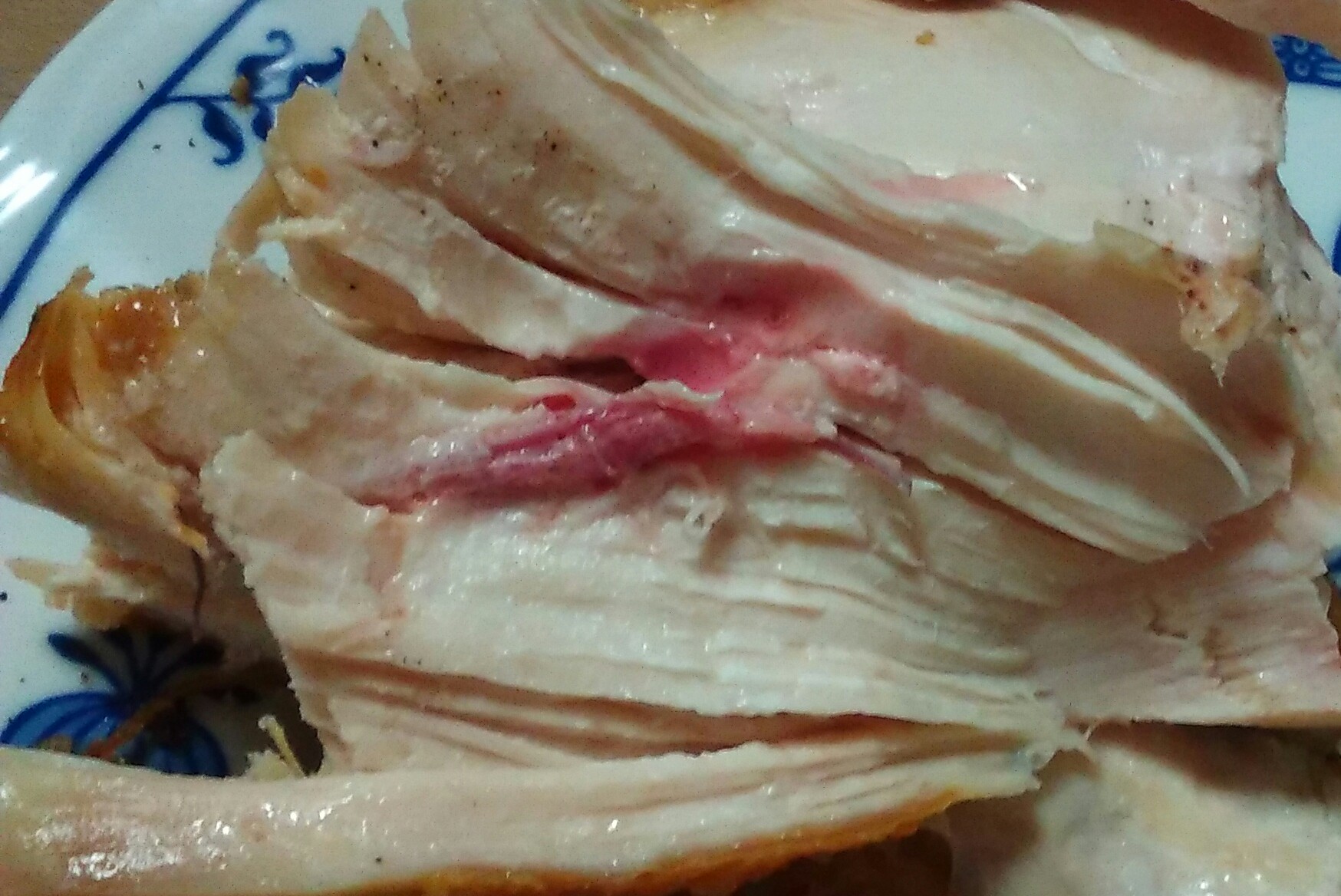 結局、赤い部分は電子レンジで加熱し直して食べました。