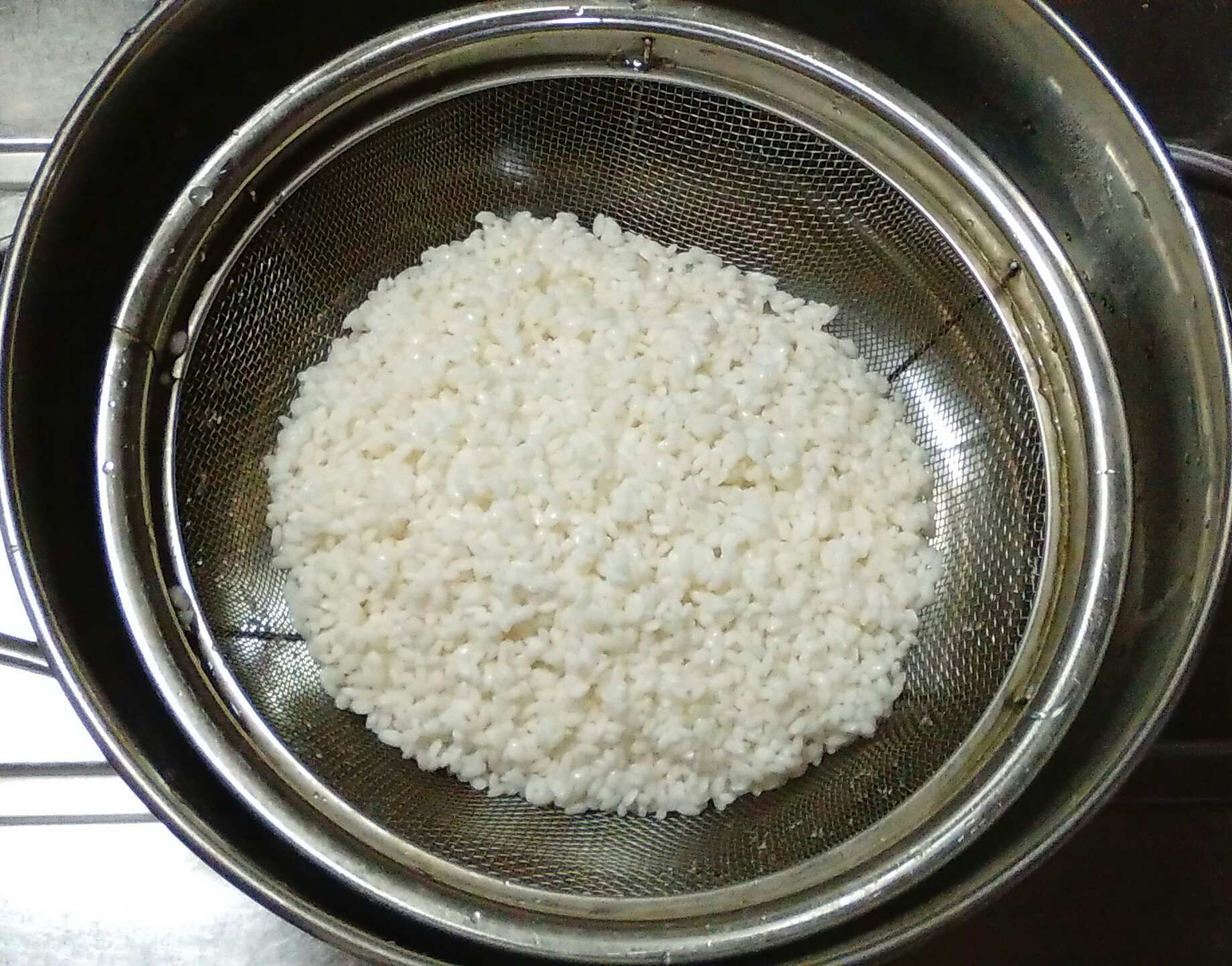 ②餅米をザルにあげ、水をきる(20分)。