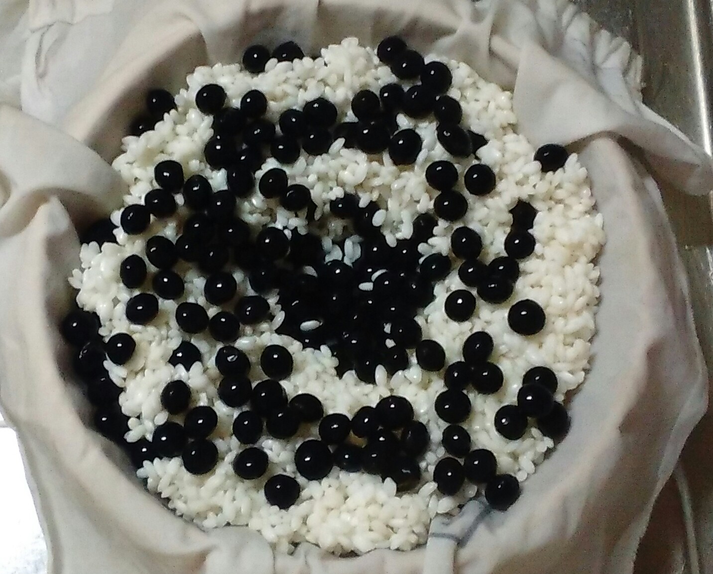 ④直前に洗っておいた黒豆を乗せる。