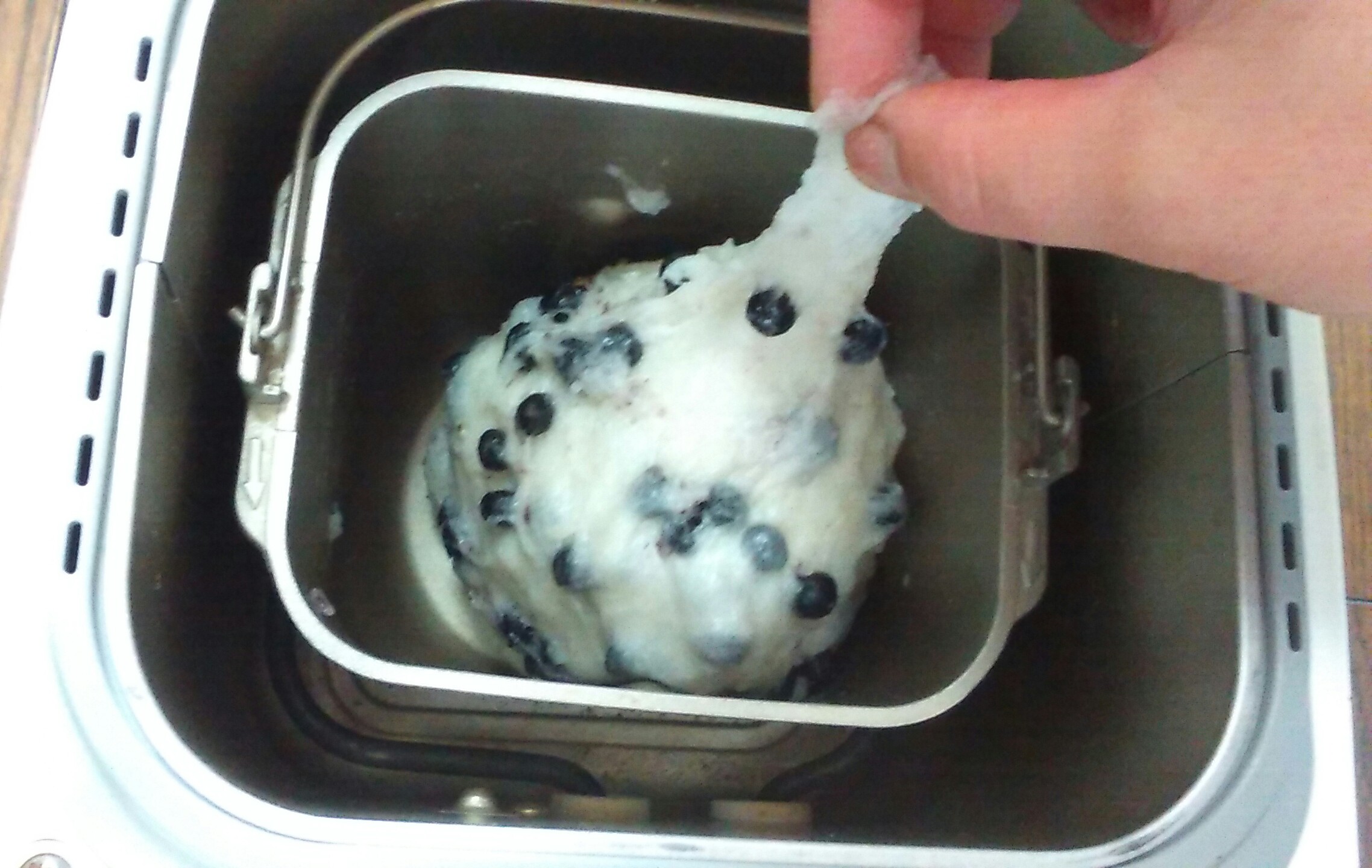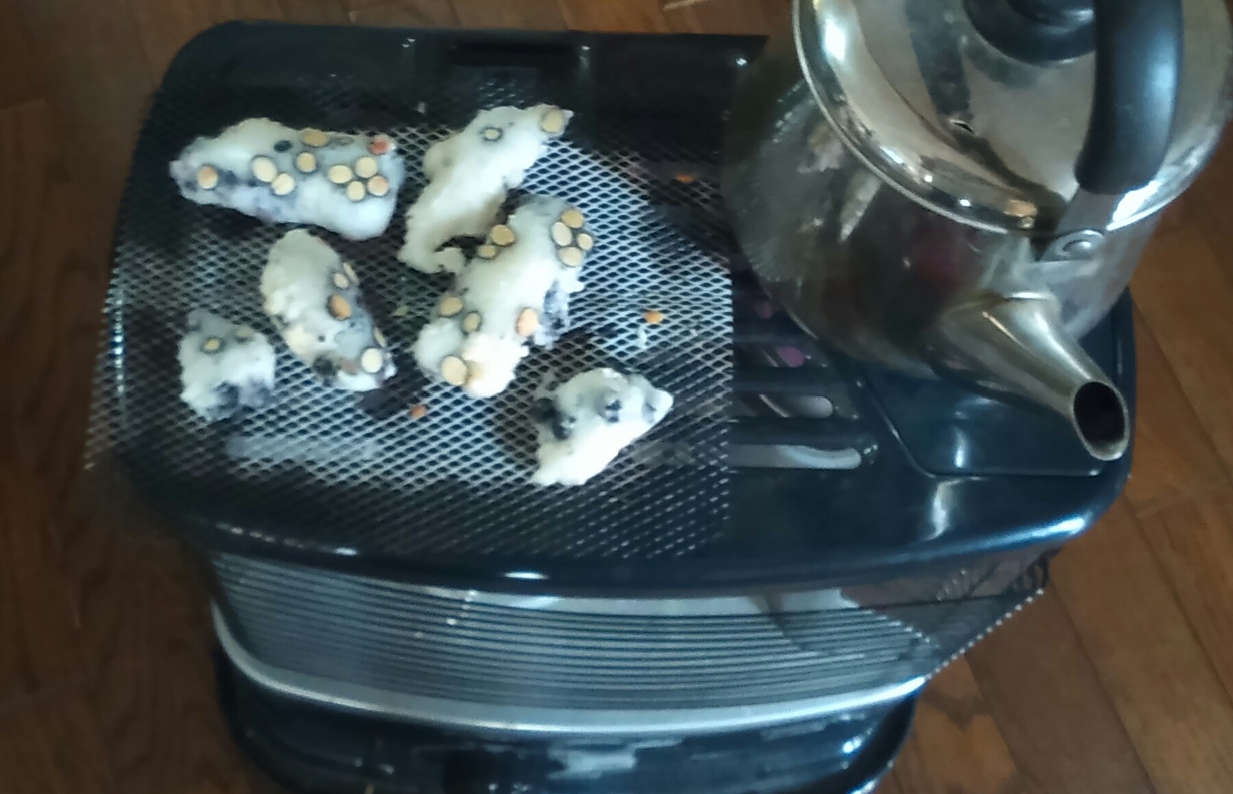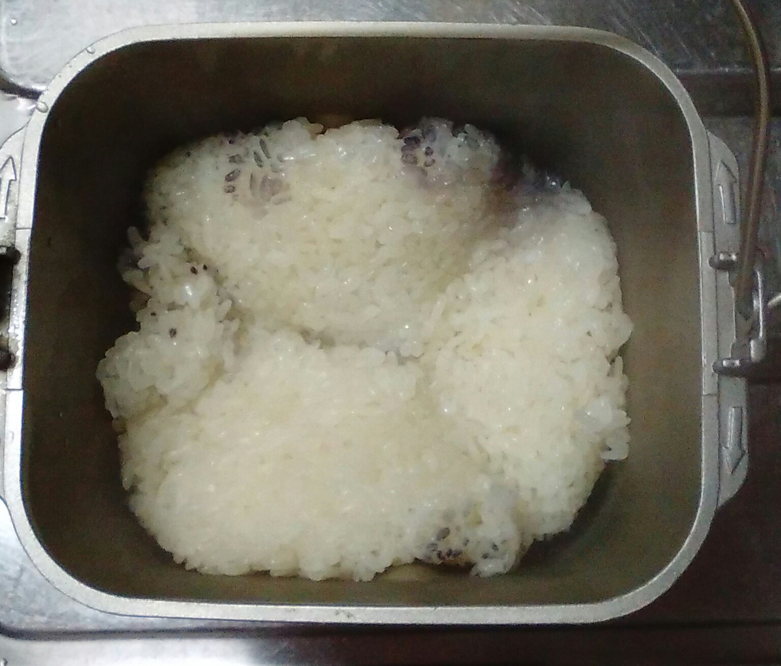 黒豆は、ホームベーカリーに最初から入れるとくだけやすいので、後から入れたかったのに、餅米とくっつけてしまいました。
