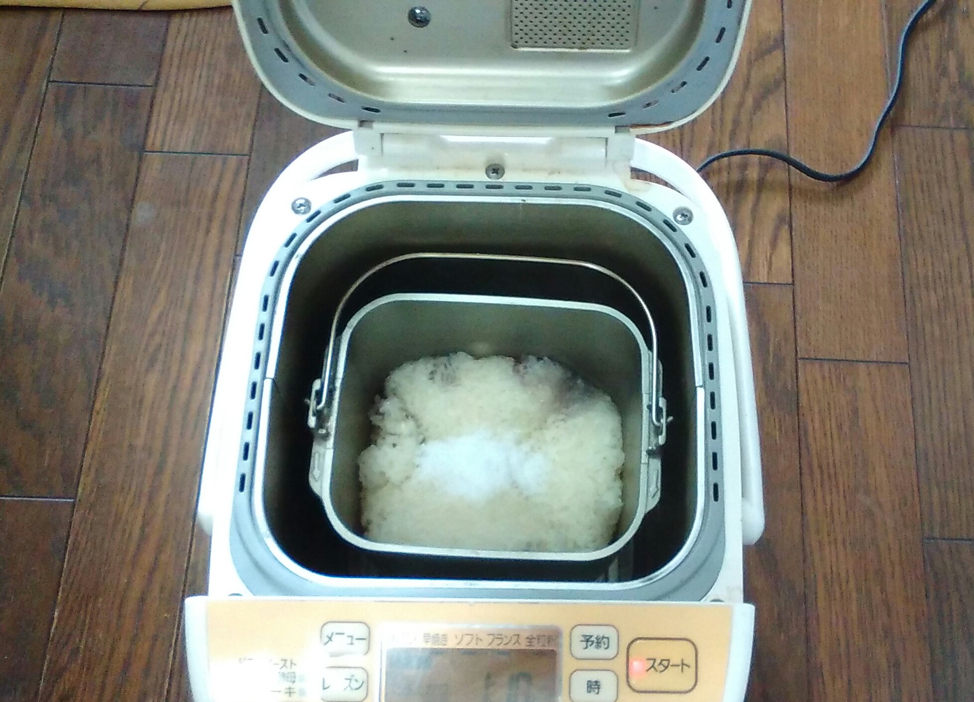 ③塩を入れ、ホームベーカリーを“こね”に設定しスタートする。