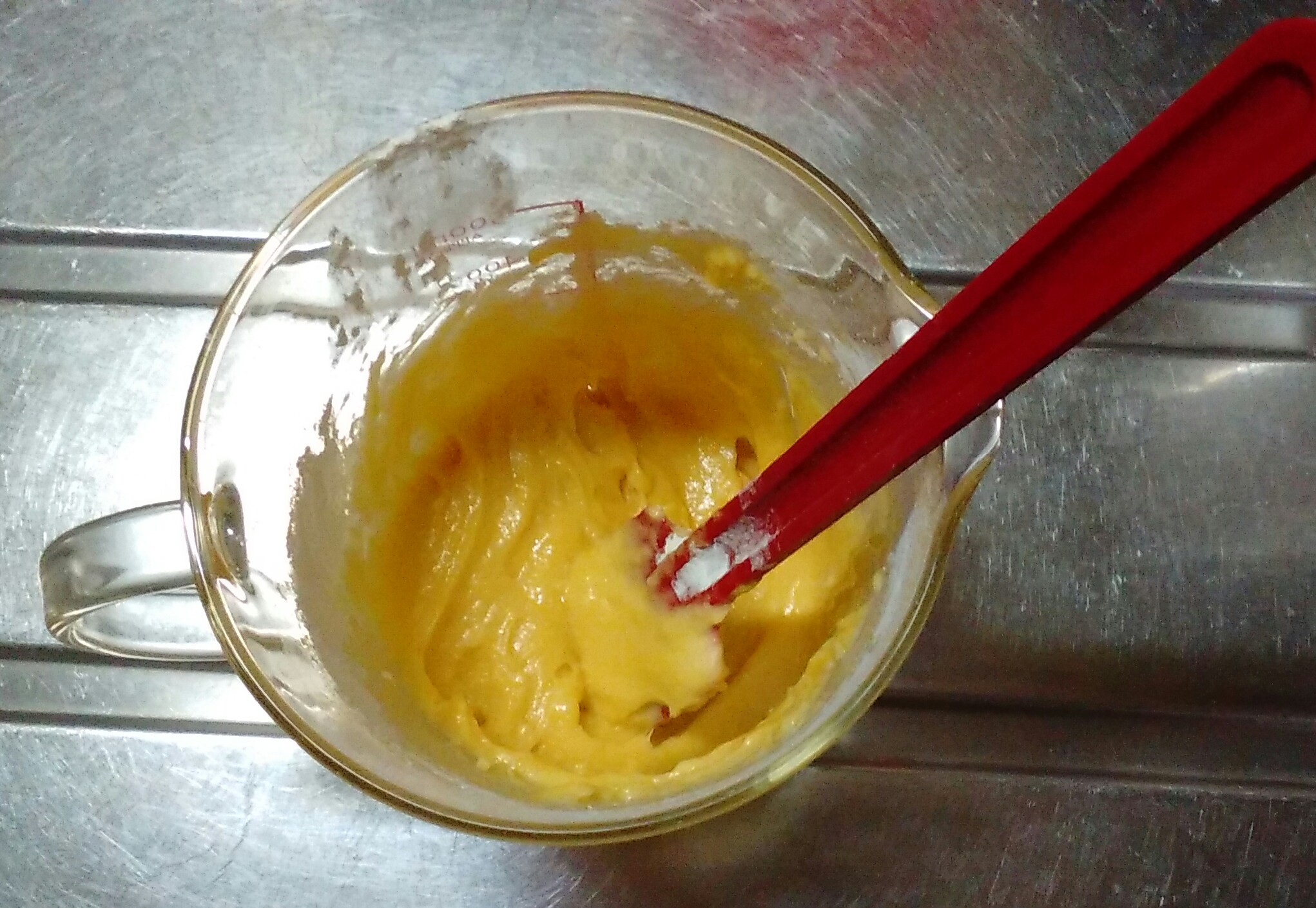 通常、ケーキではサックリ混ぜますが、ここではなめらかになるまで混ぜます。