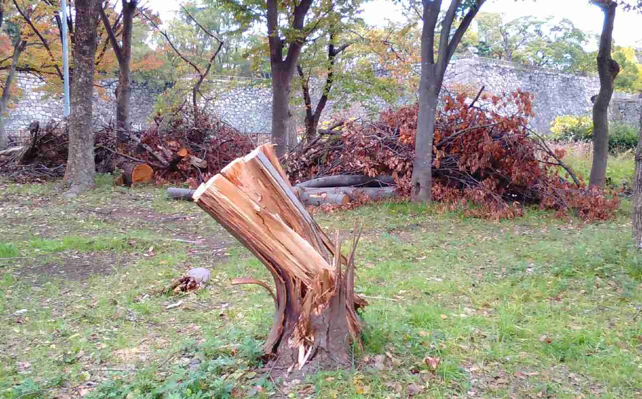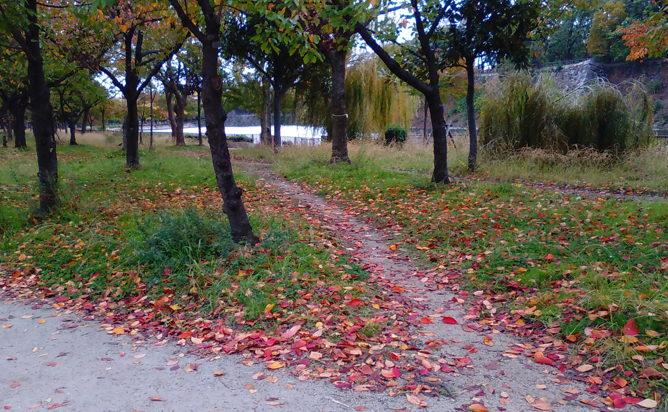 こんなふうに木々はところどころ折れてるけど、大阪城公園は今、桜の落ち葉が素晴らしいのですよ~。
