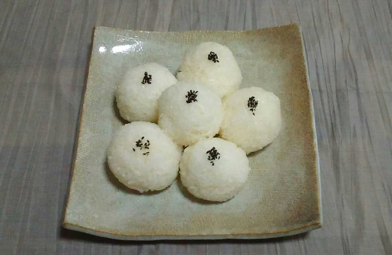 晩ご飯は、お決まりの真ん丸の塩にぎり。