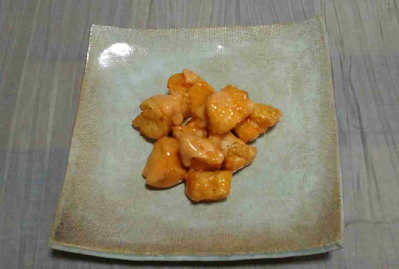 ④揚げた鶏にオーロラソースを絡めれば完成です。