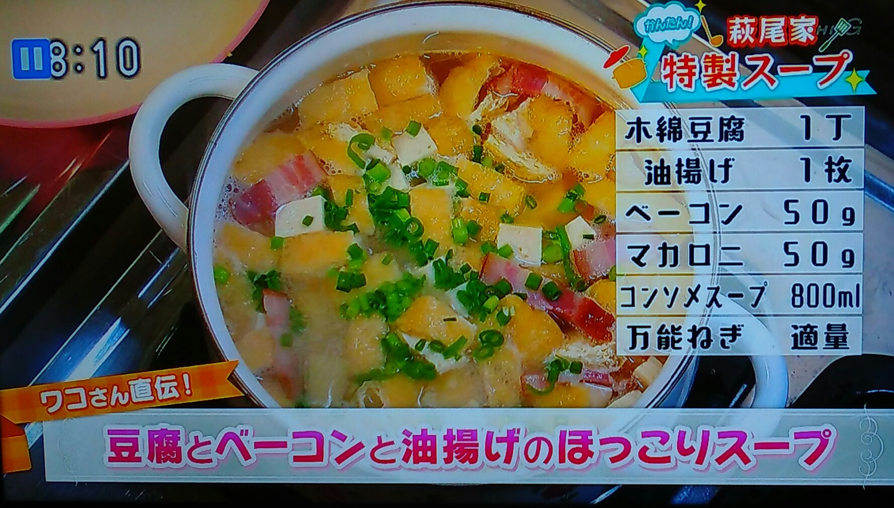 今日のスープは、『半分、青い。』のドラマの中で、正人に失恋し泣いている鈴愛に、幼馴染みの律が作ってあげたスープです。