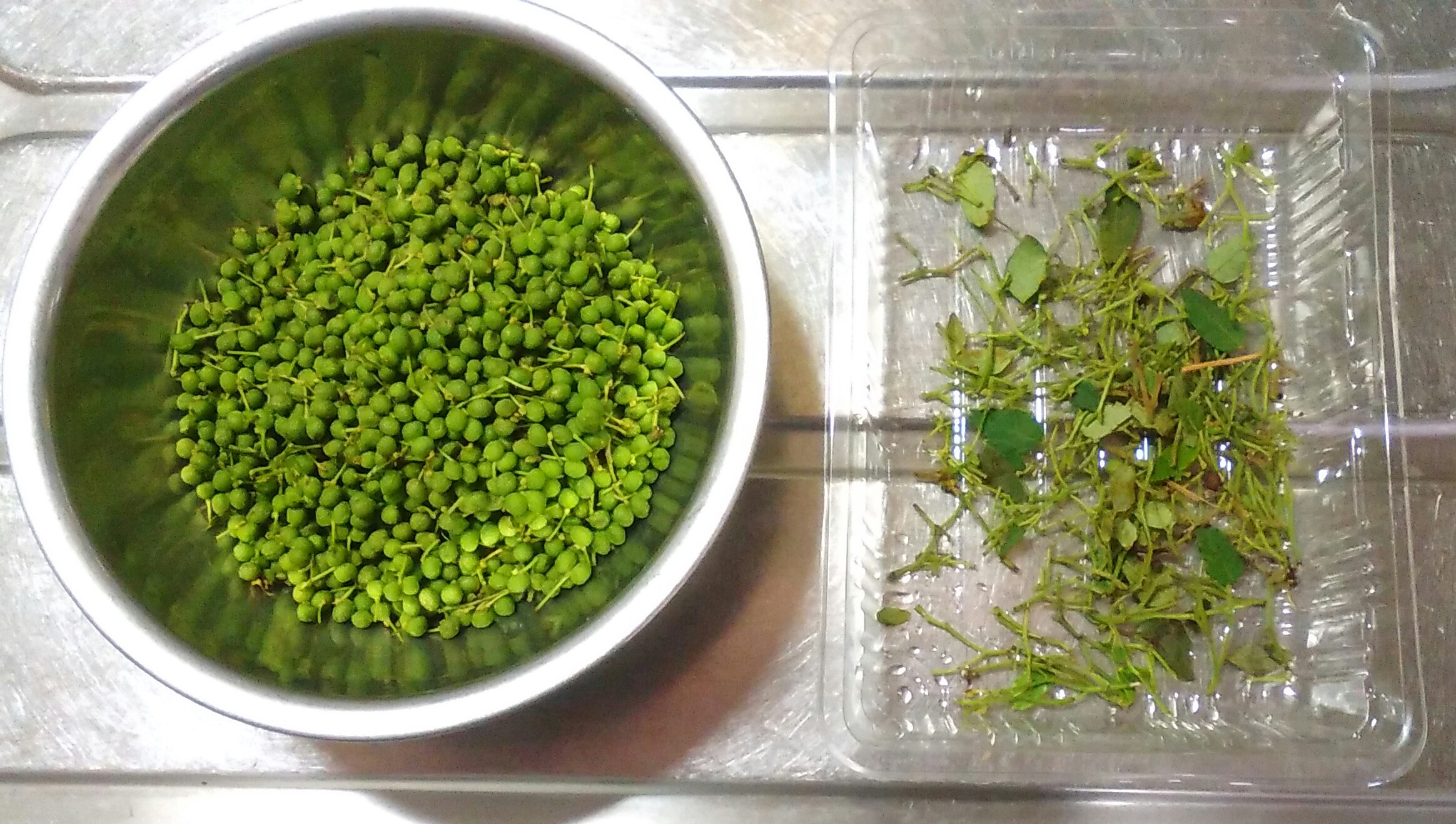 山椒の実も、昨日の青梅と同じくテンションの上がる鮮やかな緑色!