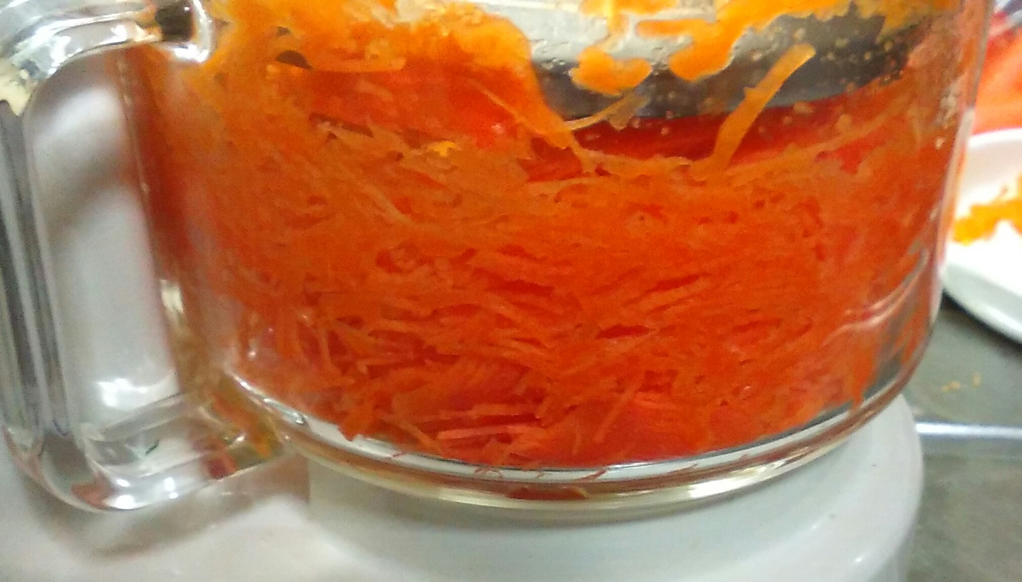 スライサーでもいいのですが、フードプロセッサの千切り刃を使えばあっという間にできます♪