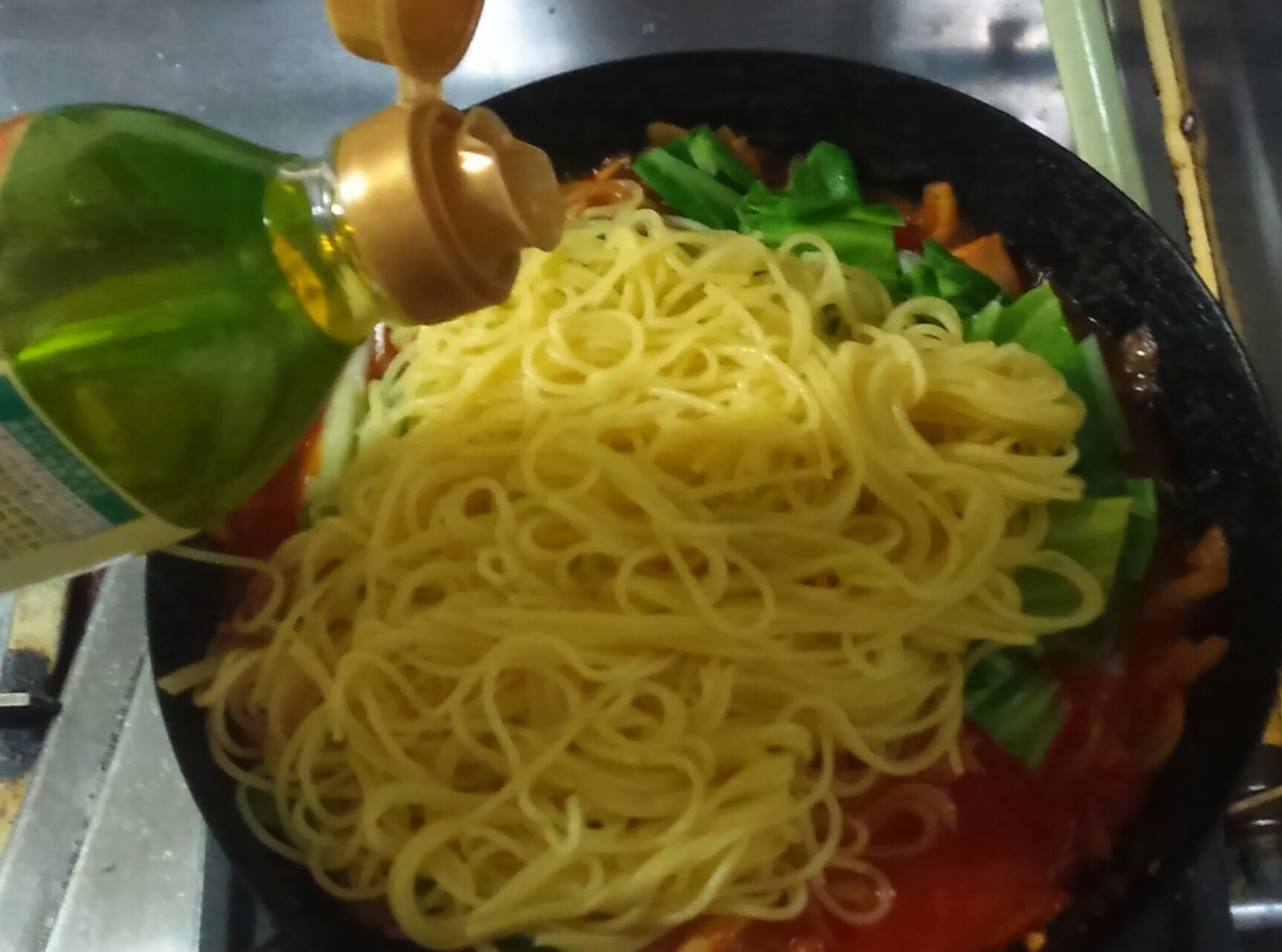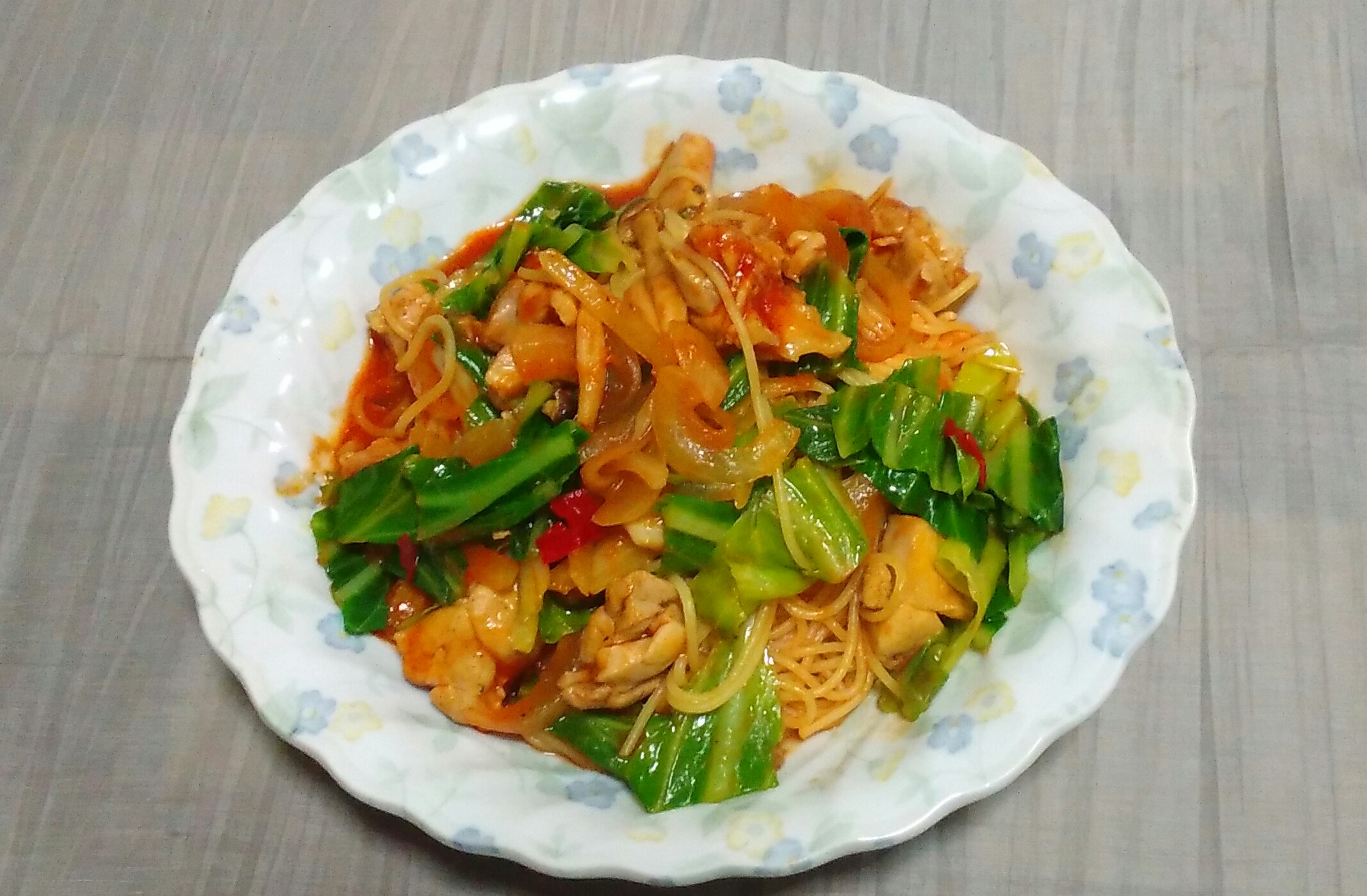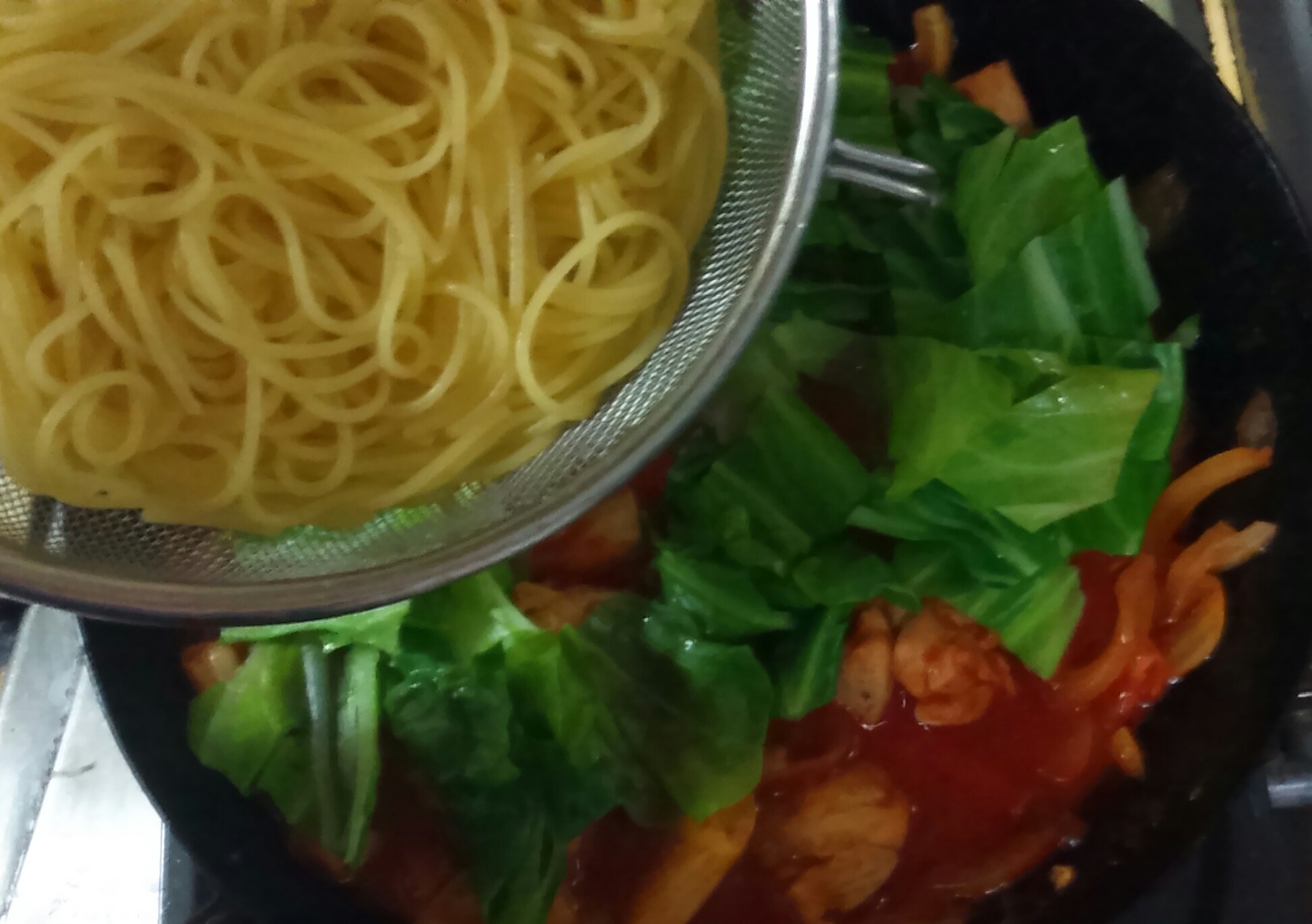 トマト系のスパゲッティーは、キャベツとの相性が抜群!