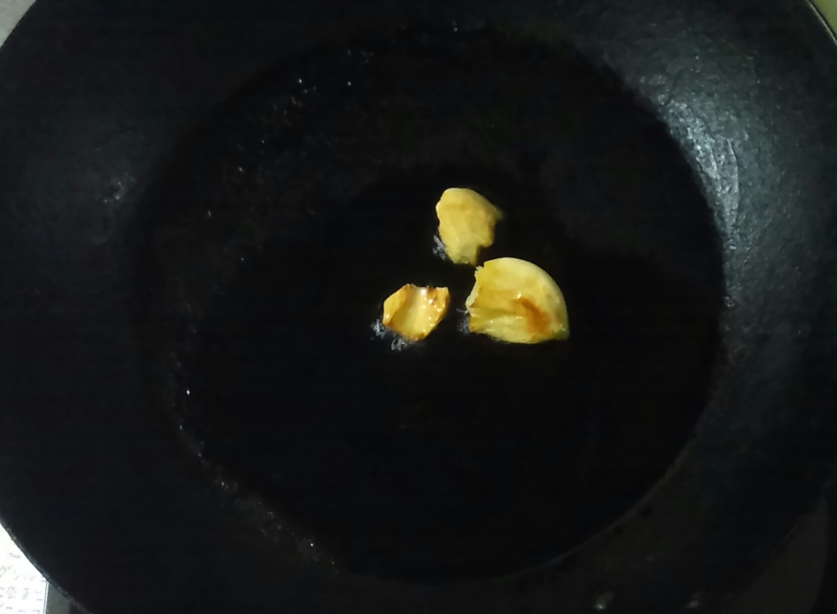 ②フライパンにオリーブ油大さじ1を入れ、ニンニクを入れて弱火にかける。